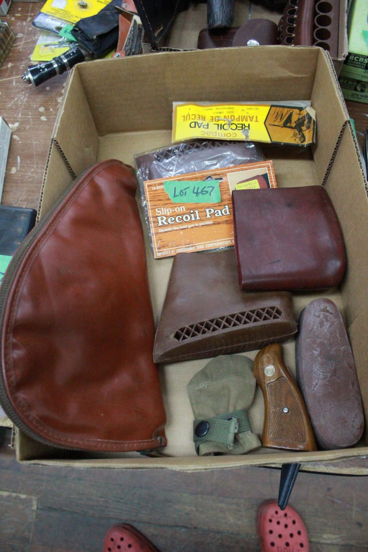 Lot 467 Flat with Recoil Pads, Pistol Grips & a Hand Gun Soft Case