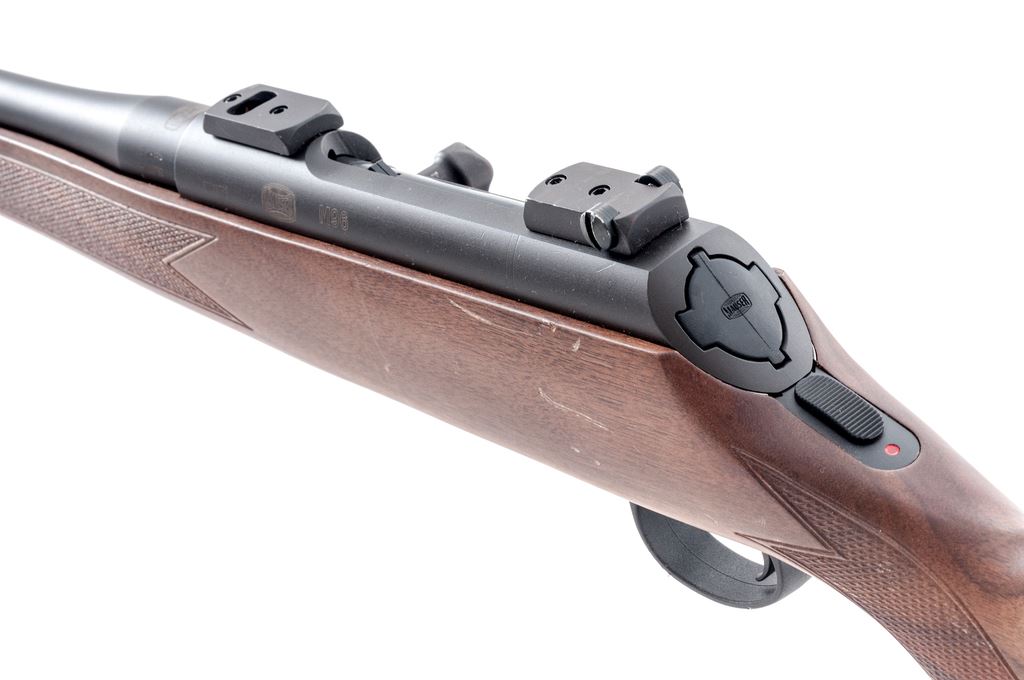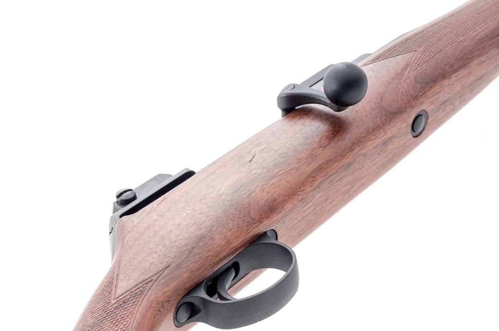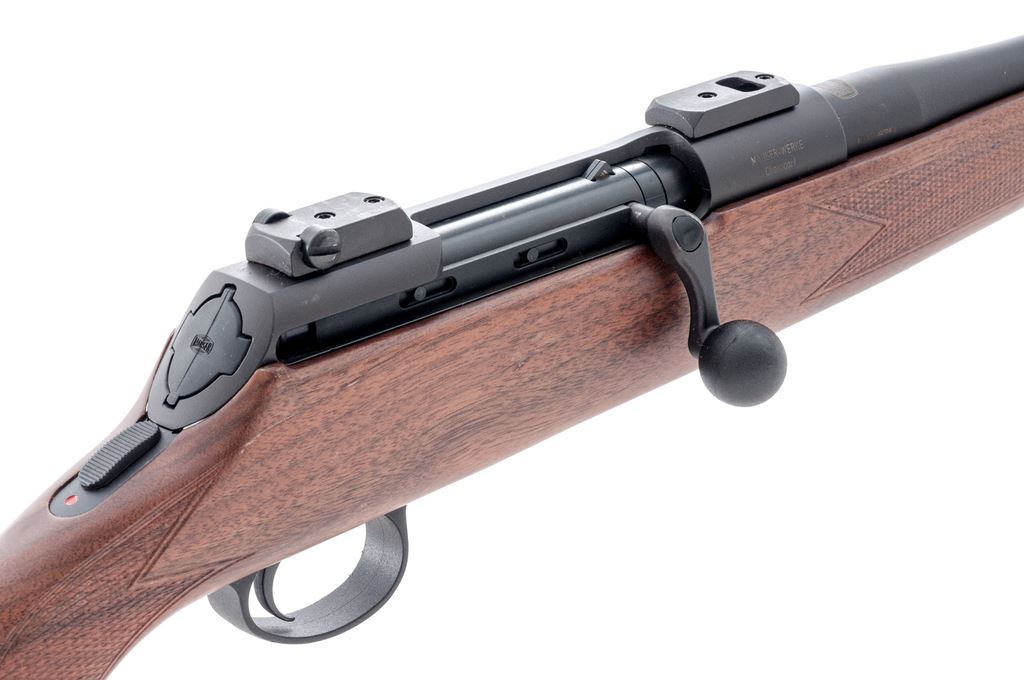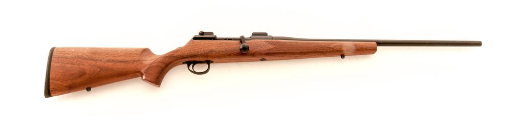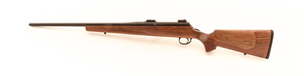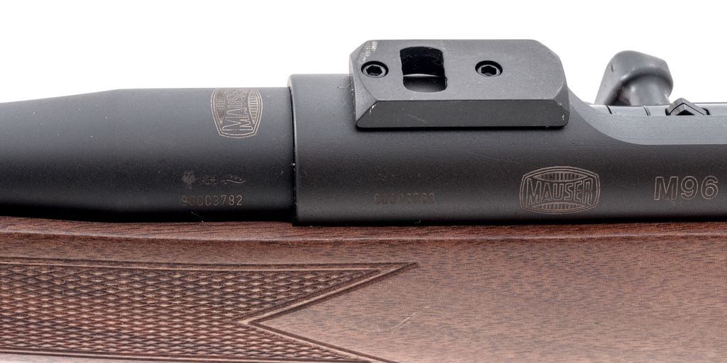 Mauser Model 96 Straight-Pull Rifle, #96003782, .270 cal., 22'' barrel, parkerized finish; one-piece pistol-grip walnut stock is checkered at the forend and grip with an oil type finish, black rubber Mauser pad, and sling swivel studs. Rifle came from the factory without sights; top of receiver with two-piece scope bases, and tang-mounted safety. ''Mauser Banner'' logo on both the frame and barrel; made in Germany, mfg'd 1997. In good to very good overall condition, rifle shows little evidence of being fired but does shows signs of improper storage. Metal retains most of the original phosphate finish with light scuffs and scratches, predominantly on the front half of the barrel; factory lettering is clear. Stock with scattered pressure dents and scratches, some within the checkering pattern. Smooth action, mirror bright bore with sharp rifling. Est.: $300-$500. (Modern)