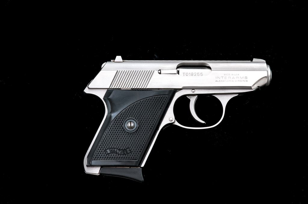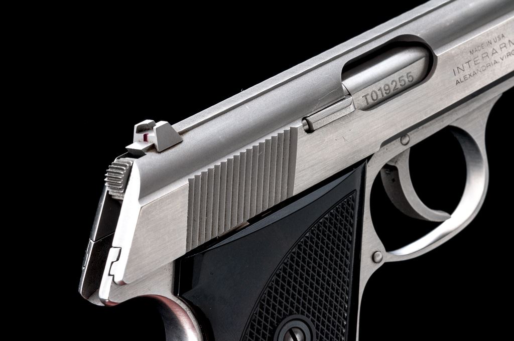 Walther TPH Semi-Automatic Pistol, #T019255, .22 LR cal., 2.75'' barrel, stainless steel, factory checkered black plastic grips, with one factory magazine. Right side of slide marked ''Made in U.S.A. Interarms''. Condition is excellent, appearing near new, with very light scuffs to forward portion of slide. Good action, bore is mirror bright. Est.: $500-$750. (Modern/PPT)
