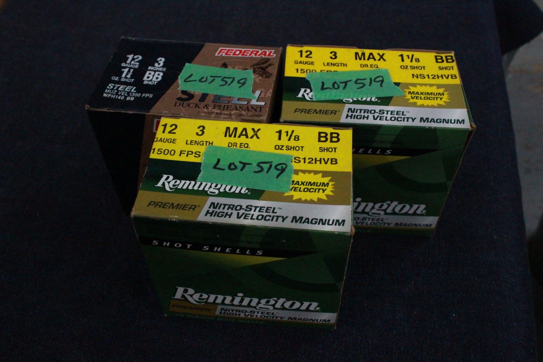 Lot 519 Live Ammunition - 3 boxes of 12 ga., 3", BB Shotshells