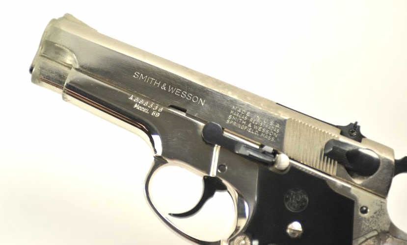 Lot 44 Smith & Wesson DA Model 59 semi-automatic pistol, 9mm caliber, Serial #A368338. The pistol is in