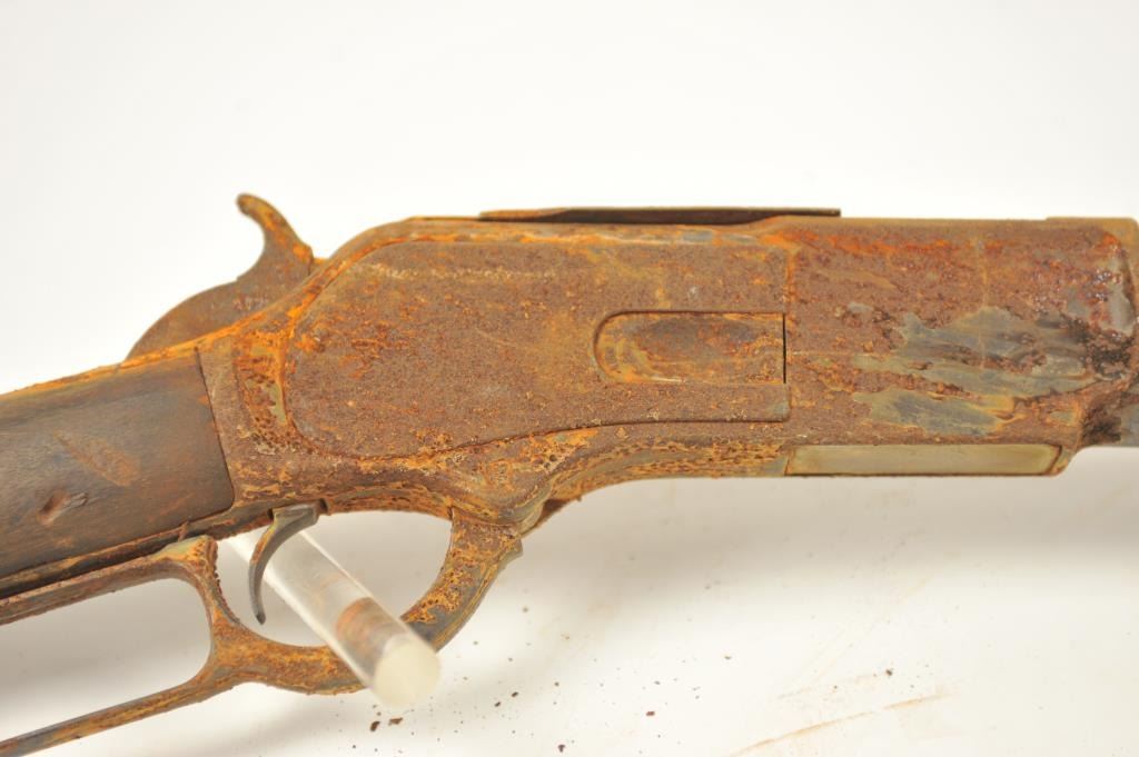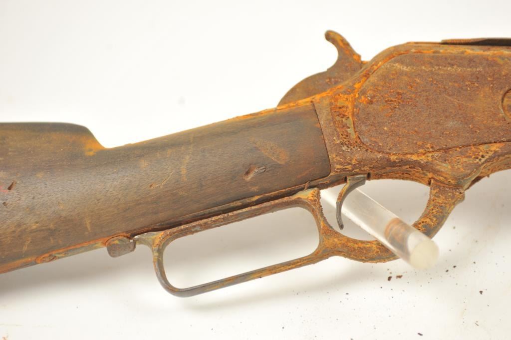 Lot 59 Winchester Model 1876 lever action rifle, .40-65 caliber, Serial #26544. The rifle is water damag