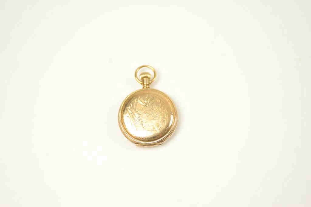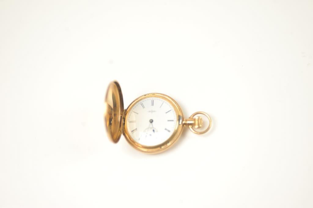 Lot 72a 14K gold ladies hunting cased pocket watch by Elgin, #2264495. Case marked, S&K #1255. Beautiful