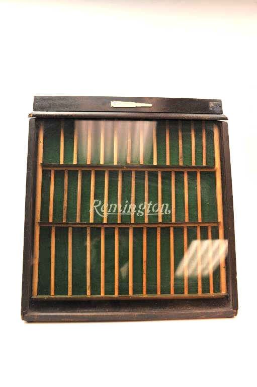 Original Remington Cutlery Display Case with bullet logo at top. Wood separators replaced, good overall with some restoration, replaced screws etc. Est:$250-500