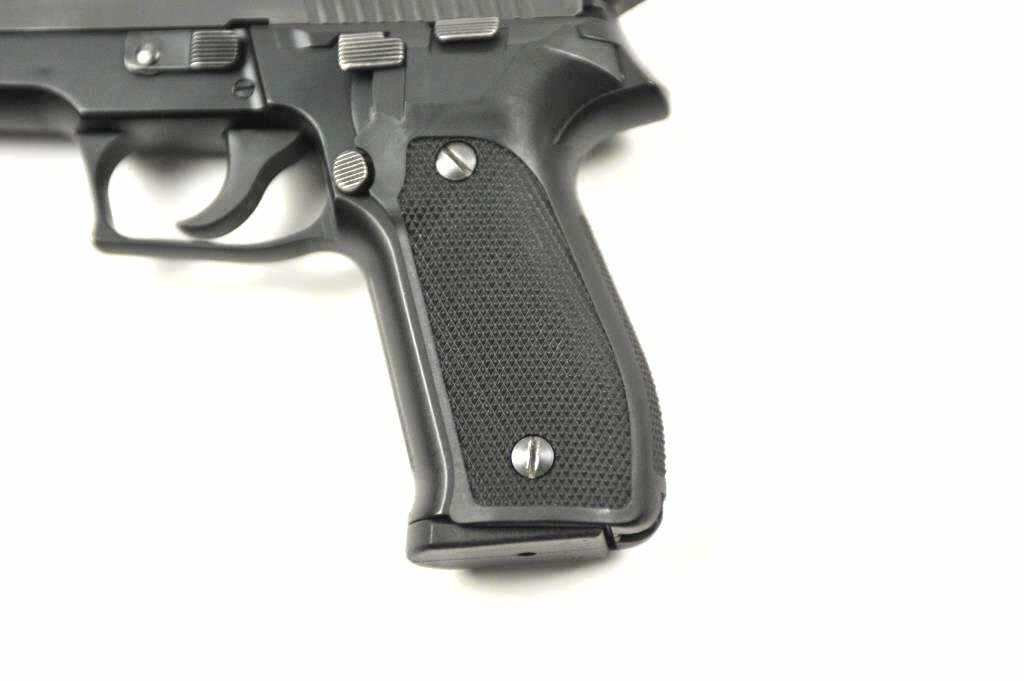Sig Sauer Model P-226 semi-automatic pistol, 9mm caliber, Serial #U162585. The pistol is in fine overall condition with a 4 ½” barrel. The pistol retains approximately 90-92% of the matte blue finish with holster wear atthe muzzle and along the slide. There are German proofs under the muzzle and the right side of the slide is marked, “MADE IN W. GERMANY”. The checkered plastic grips are in very good condition. The lot includes theoriginal factory plastic case. The bore is good, the action is crisp and the markings are sharp on this early Sig Sauer. The lot includes two Meggar magazines. Est.: $500-$1,000. (Modern/PPT).
