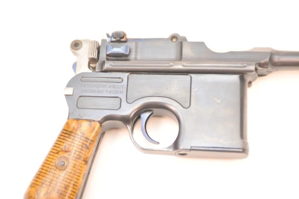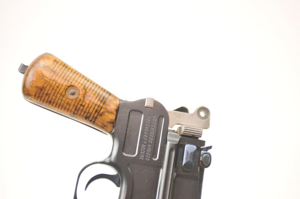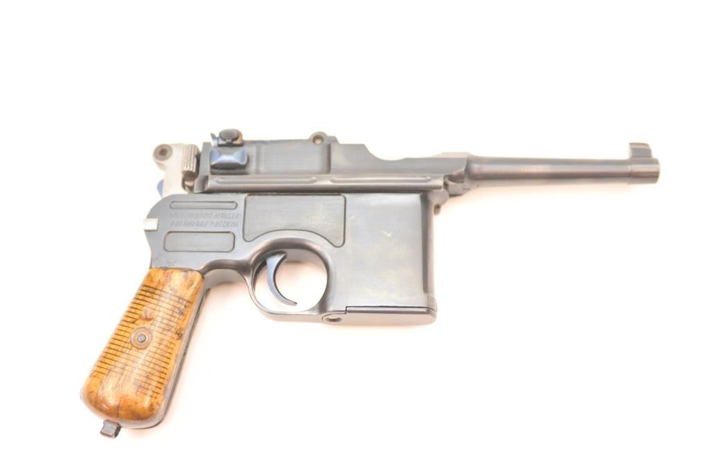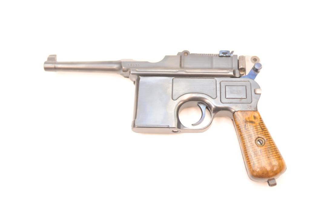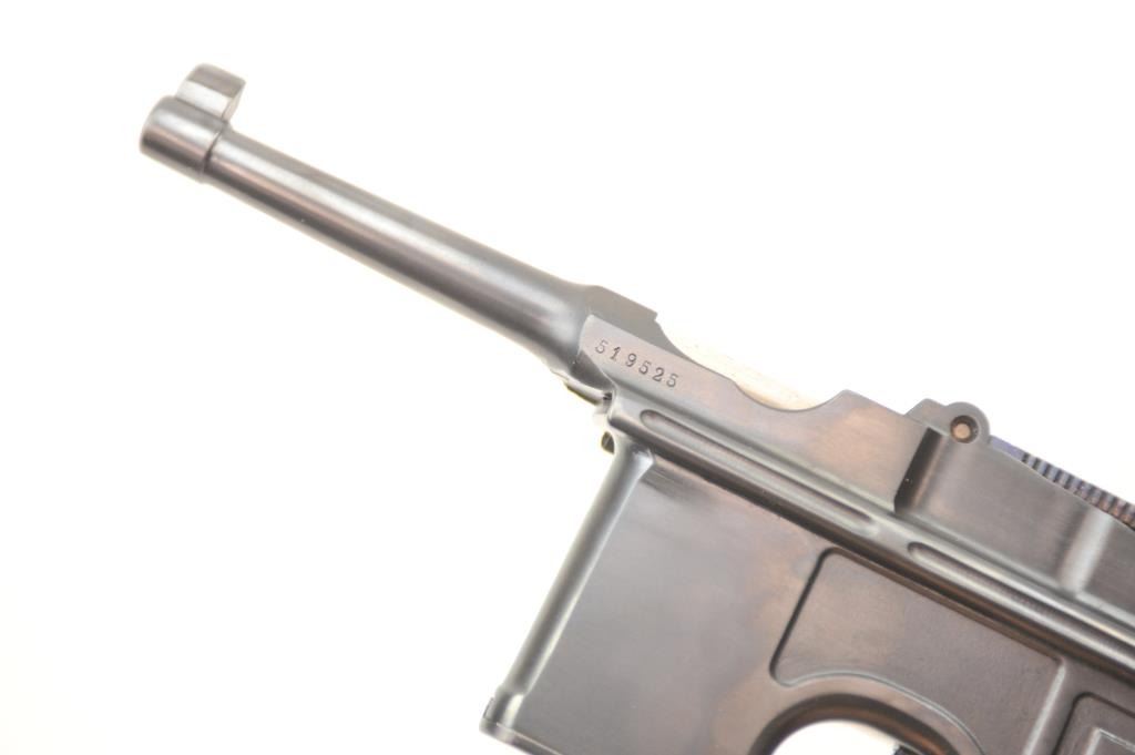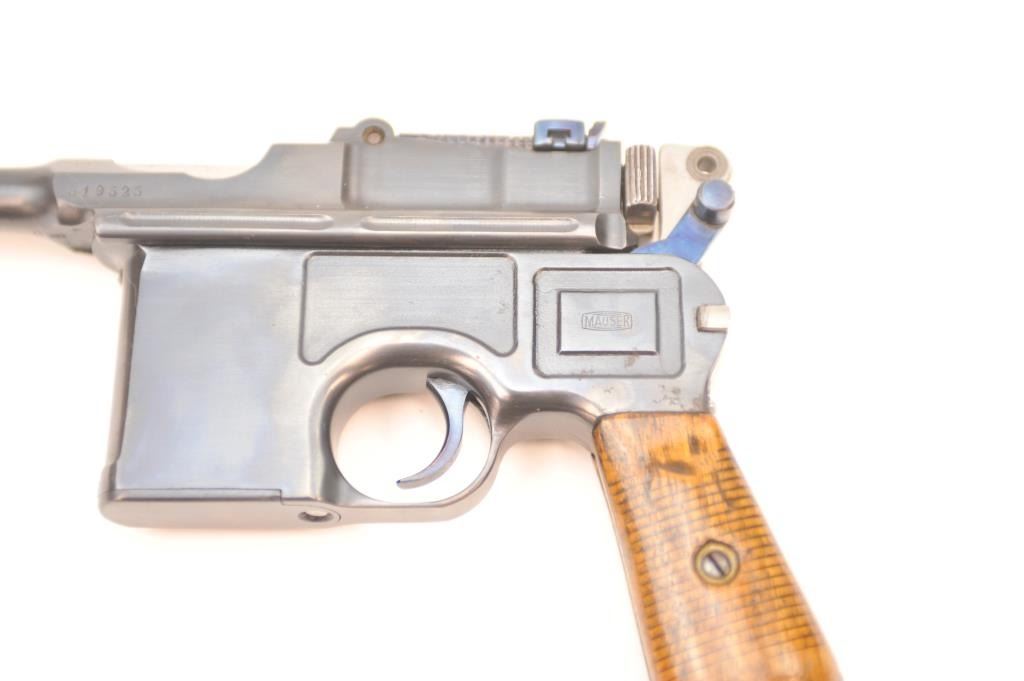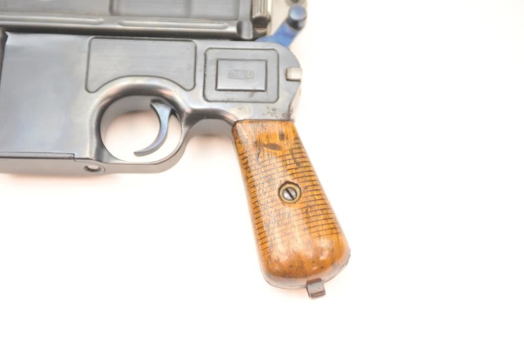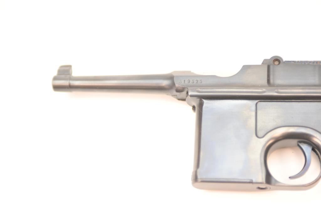Lot 113 Mauser 1896 semi-automatic pistol, .30 Mauser caliber, Serial #519525. The pistol is in nearly ex