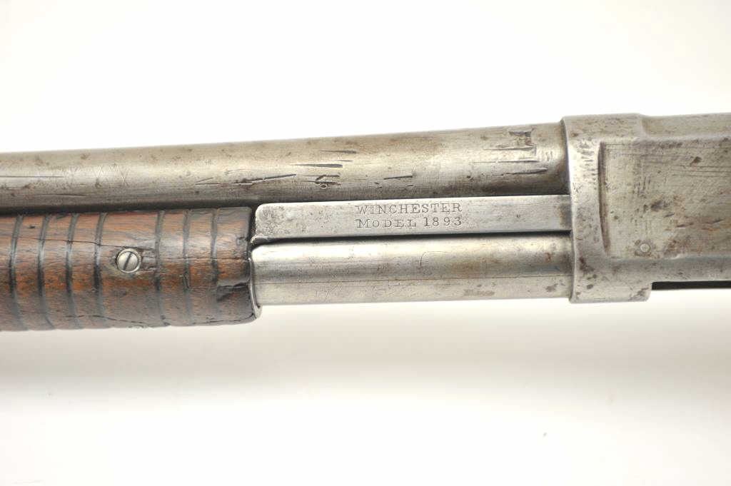 Lot 122 Early Winchester Model 1893 pump shotgun, 12 gauge, Serial #8191. Early 12 gauge pump action shot