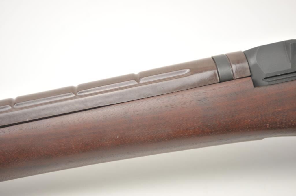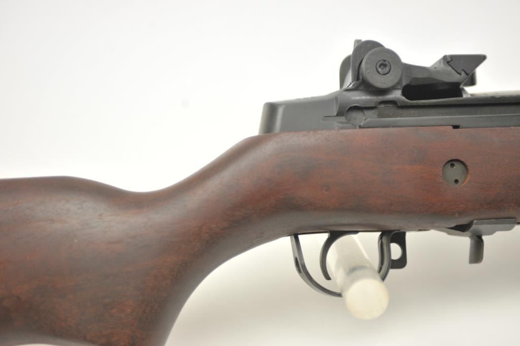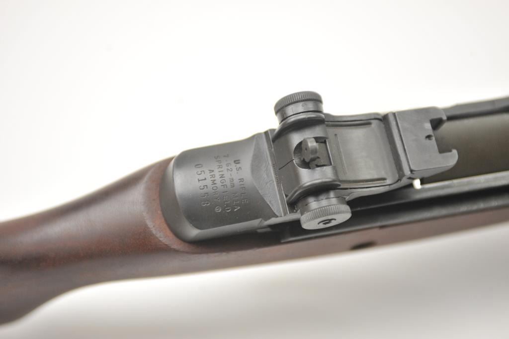 Springfield M1A semi-automatic rifle, .308 Winchester caliber, Serial #051558. The rifle is in nearly excellent overall condition with a 25” barrel including the muzzle break. The rifle retains 95-96% ofthe parkerized military finish with light handling marks. The smooth wood stock is in very good overall condition showing little use. The bore is good, the action crisp and the markings are sharp. The lot does notinclude a magazine. Est.: $900-$1,800. (Modern).