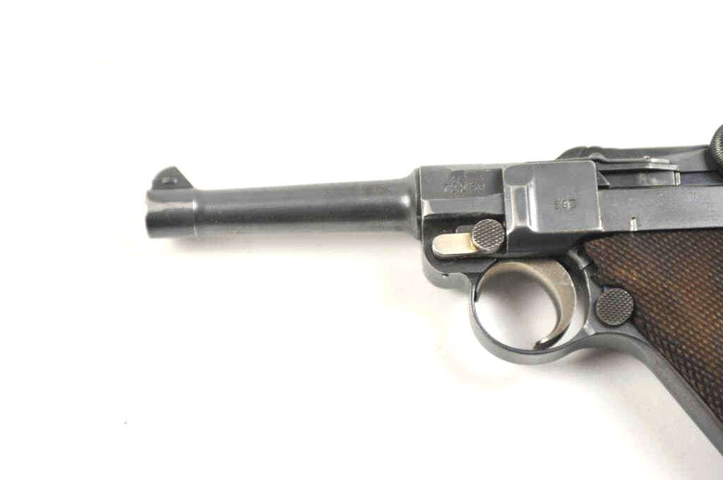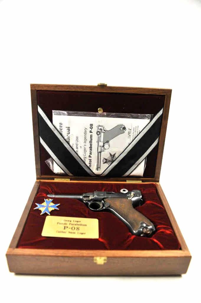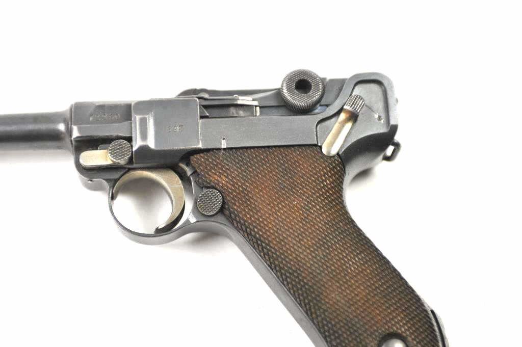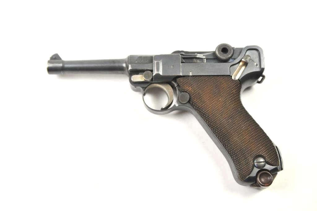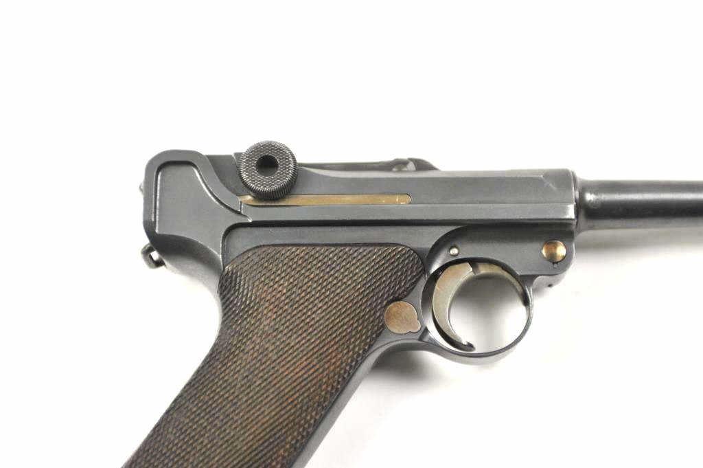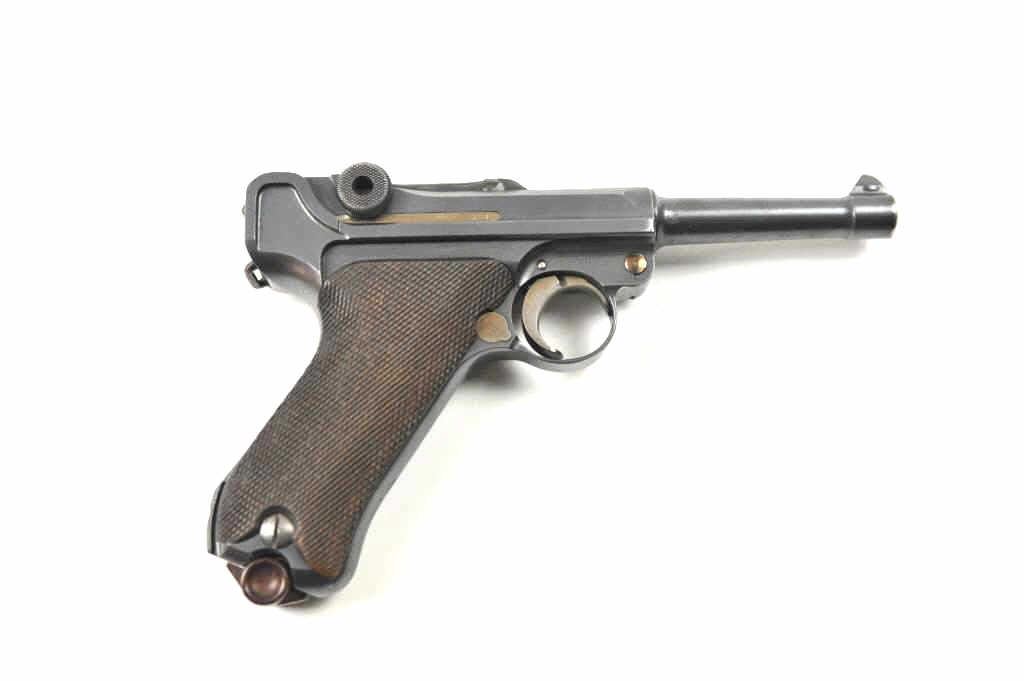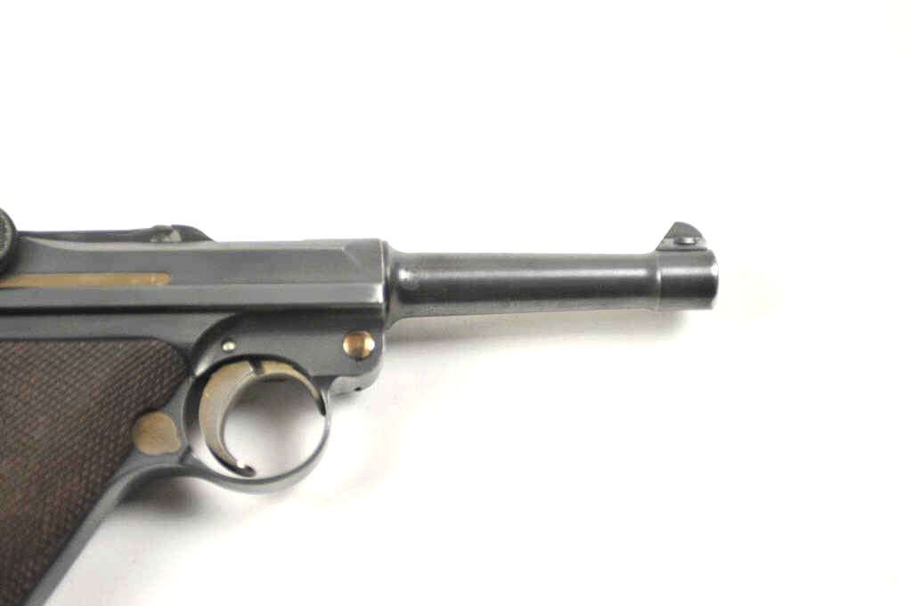 Lot 130 DWM P-08 1920 Luger semi-automatic pistol in wooden display case, 9mm caliber, Serial #72269. The