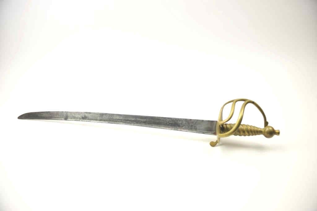 Lot 139 Classic Revolutionary War era British style hanger with 'Running Wolf' and S.H stamp on blade. Uns