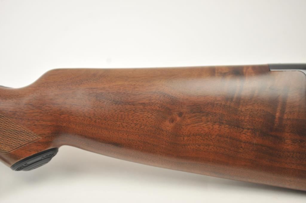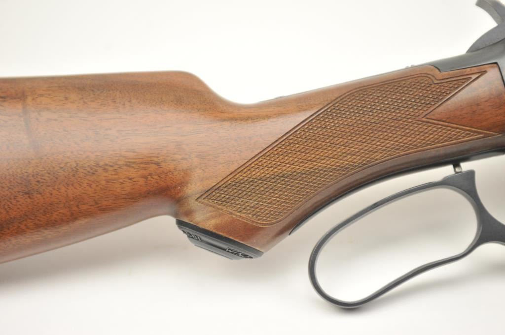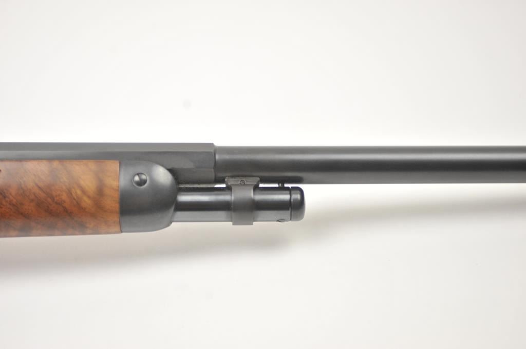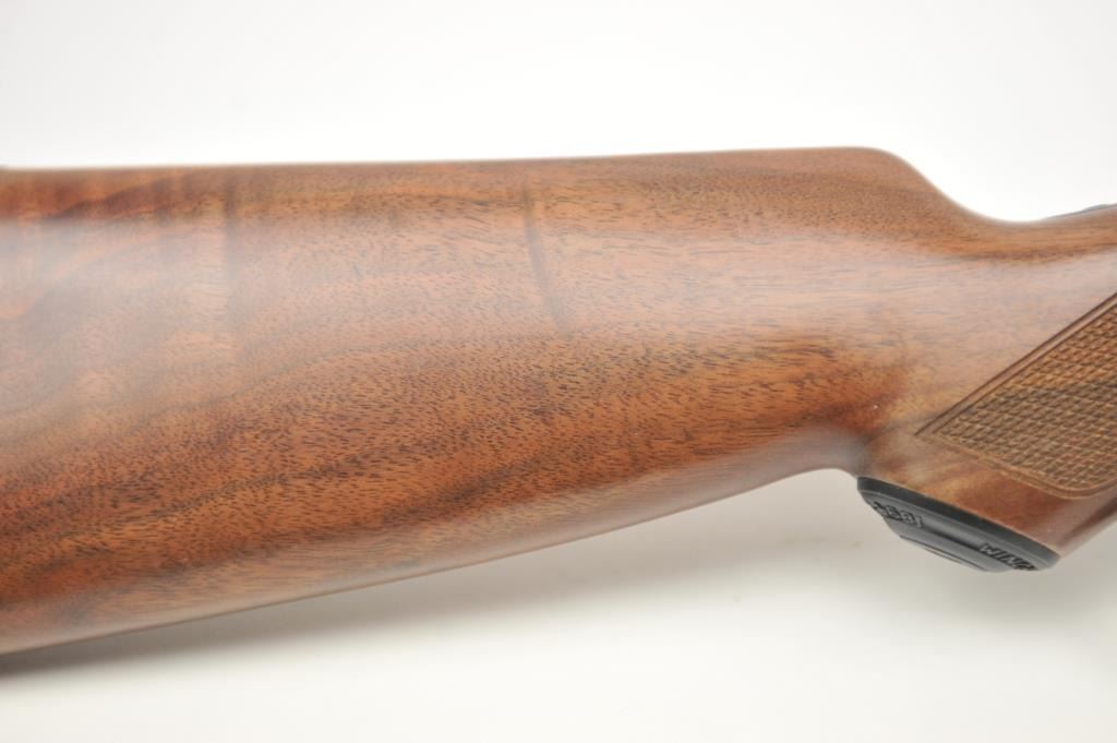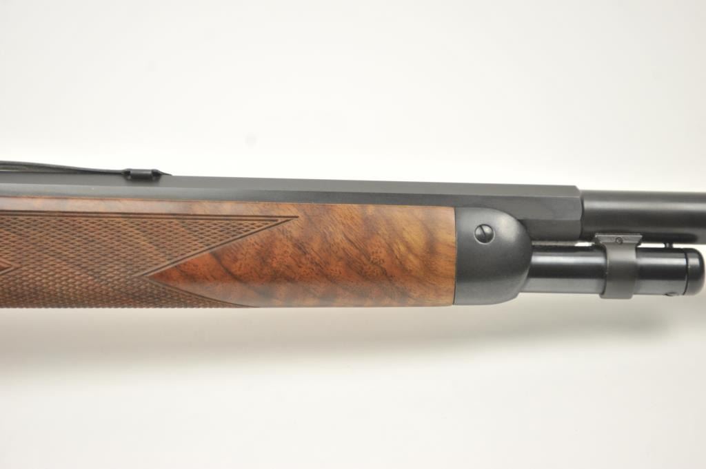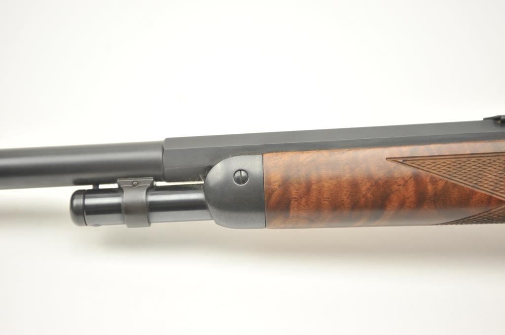 Winchester Model 1894 One Hundred Year Centennial Commemorative Model lever action rifle, .30 WCF caliber, Serial #CN05521. The rifle is in nearly excellent overall condition with a 26” octagon to round barrelwith a ¼ magazine. The rifle is marked, “1894-1994” on the right flat. The receiver is nicely scroll engraved with game scenes on both sides. The finely checkered wood stock has a pistol grip with nicely figured woodand a smooth steel crescent butt plate. Est.: $900-$1,800. (Modern).