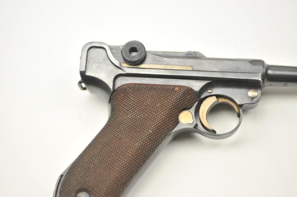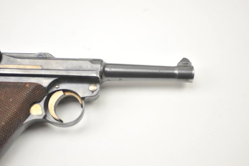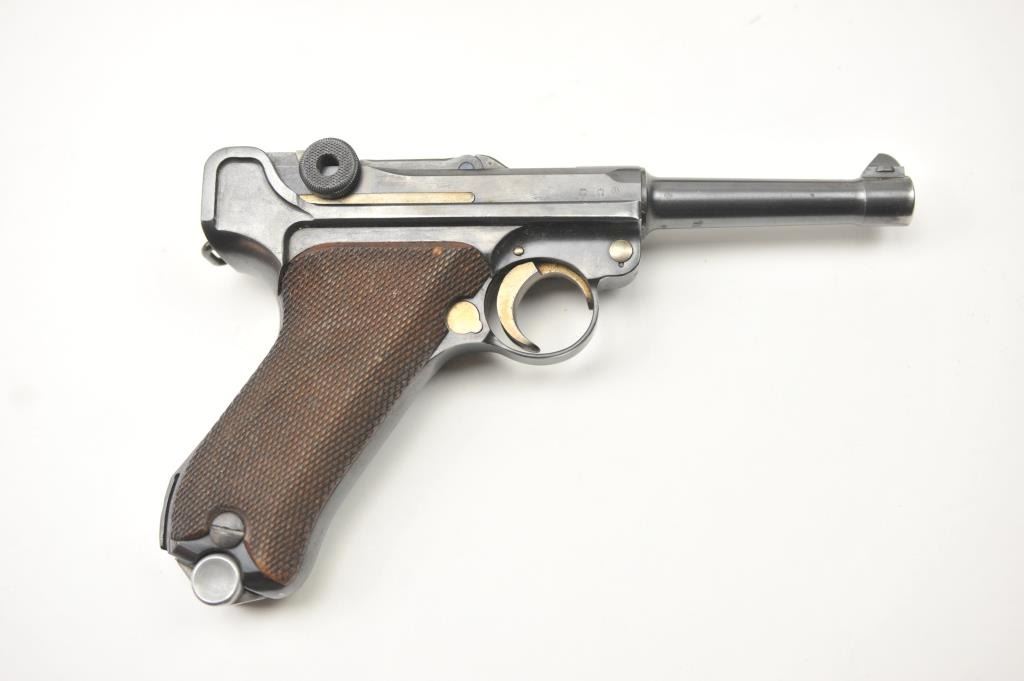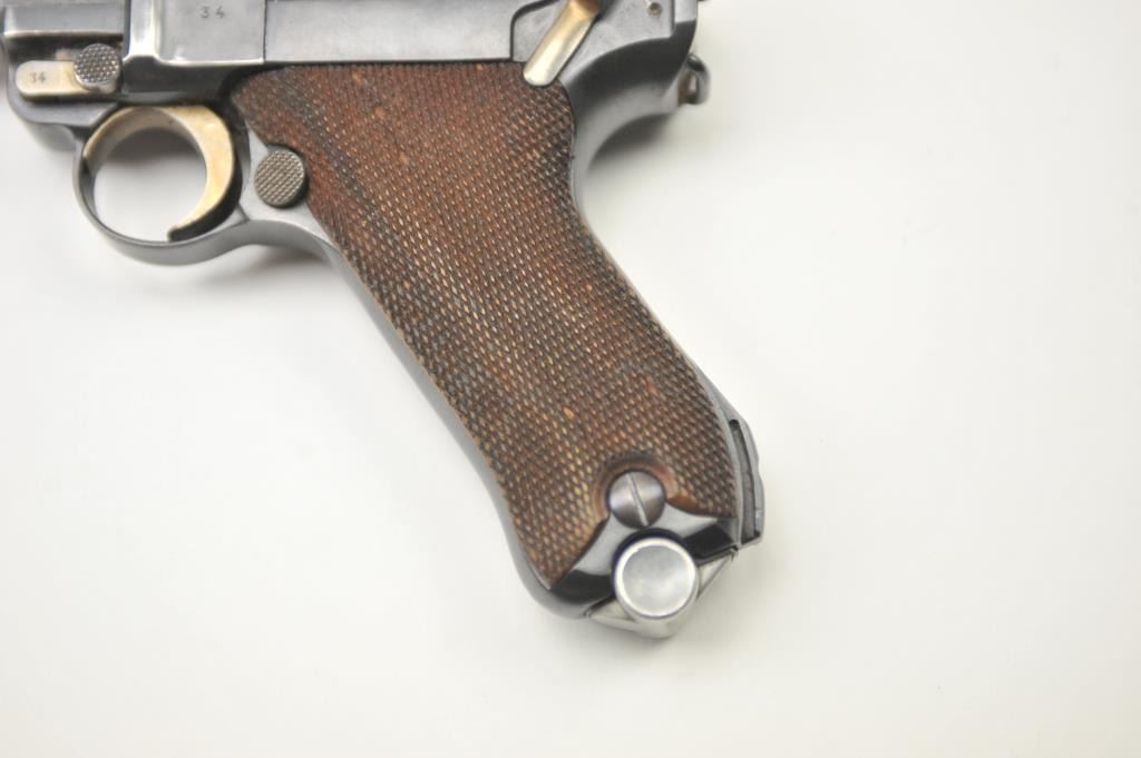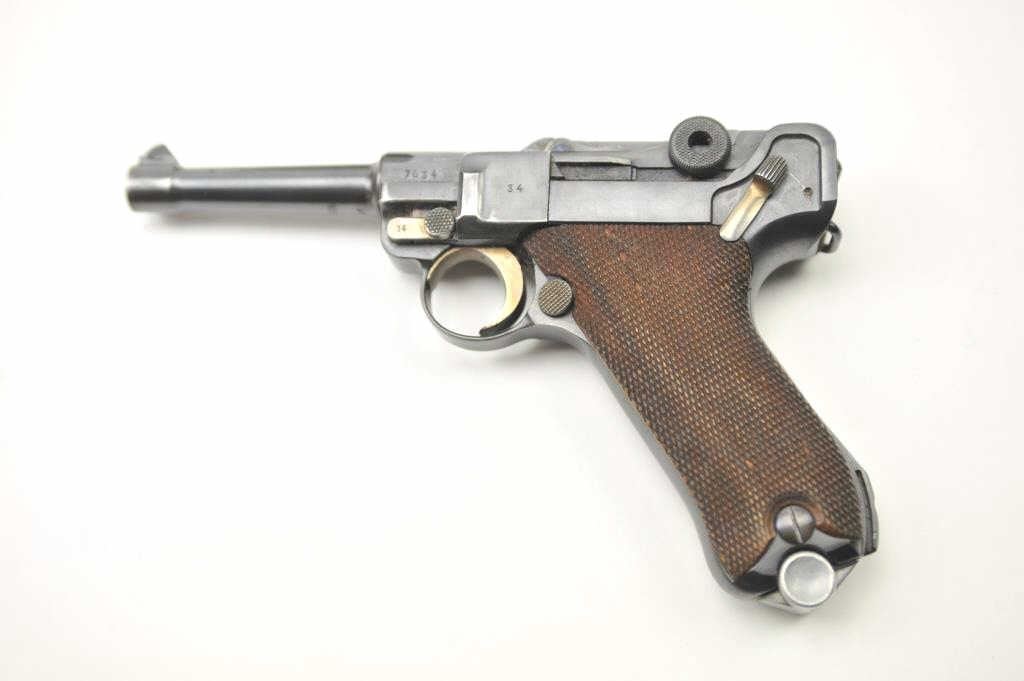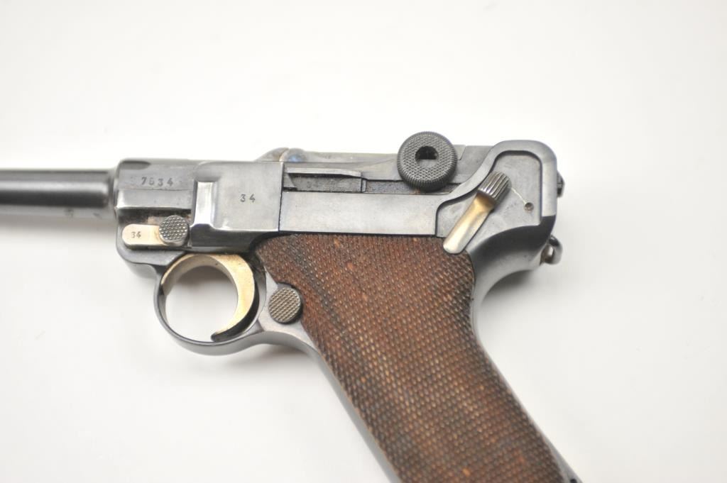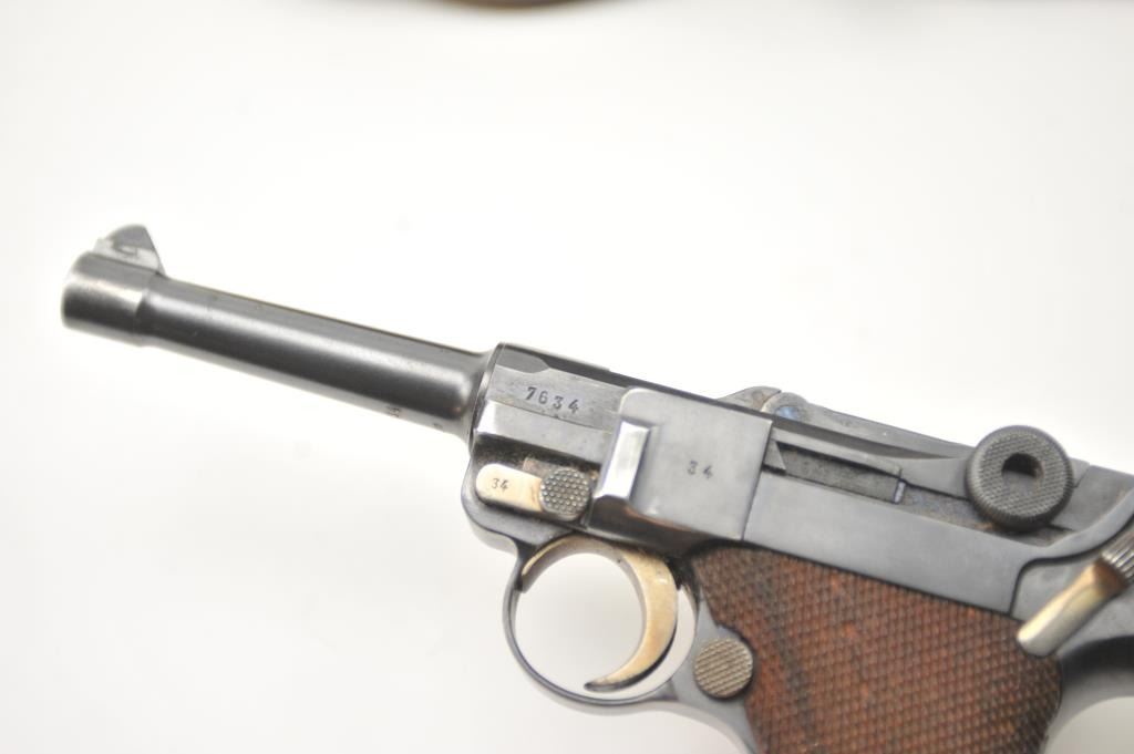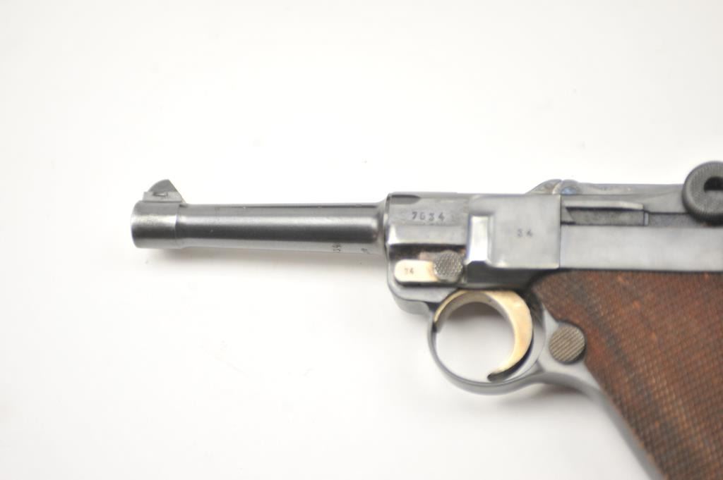 Lot 149 1936 S/42 Mauser Luger semi-automatic pistol, 9mm caliber, Serial #7634. The pistol is in nearly