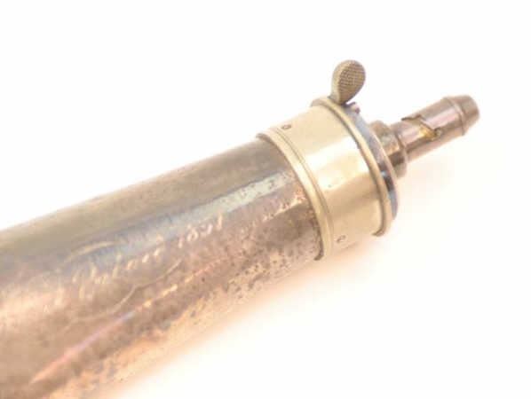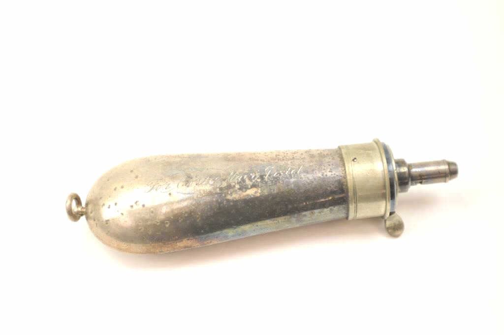 Lot 161 Bag flask for Colt Navy marked “Hawksley Shefield”. Originally silver plated and inscribed “Crysta