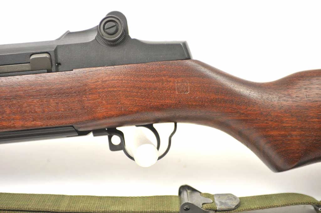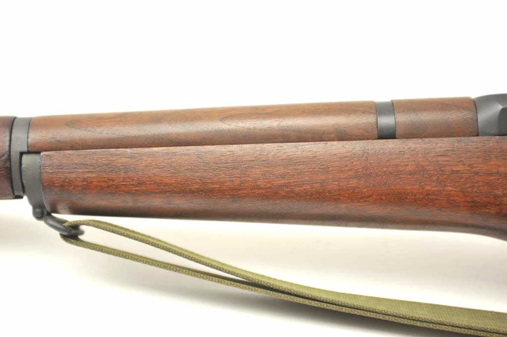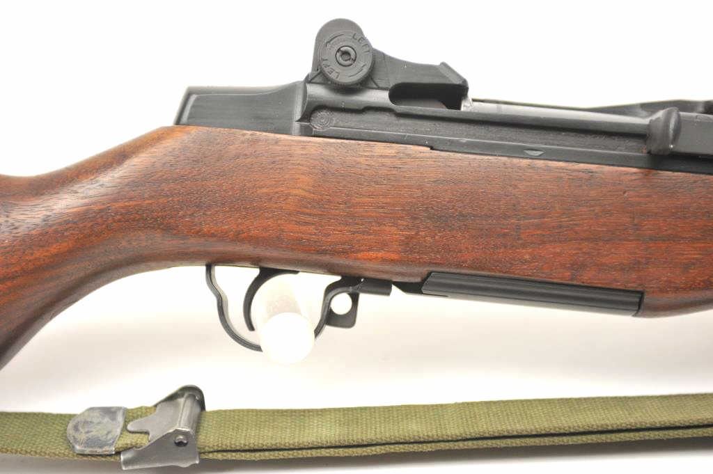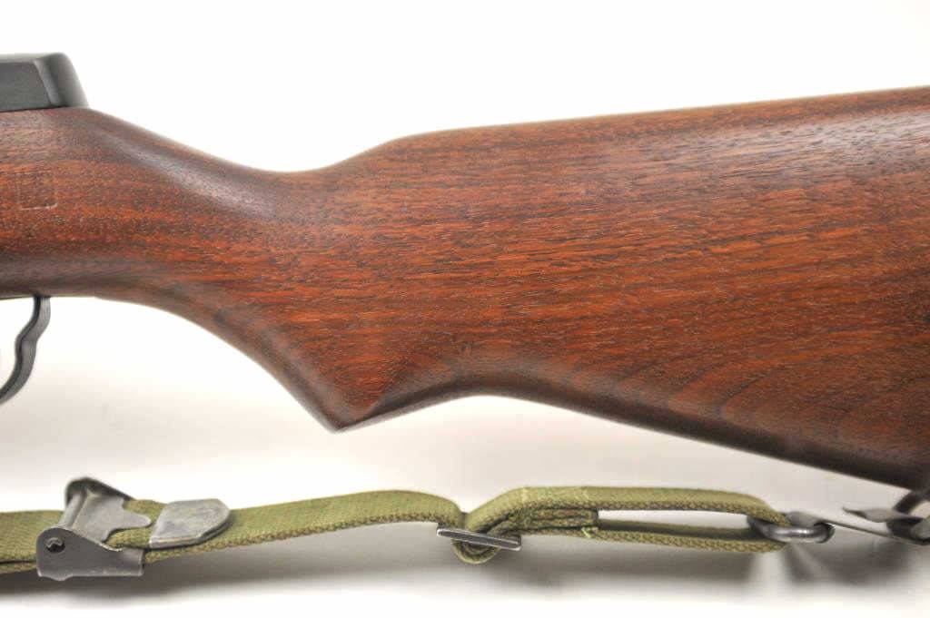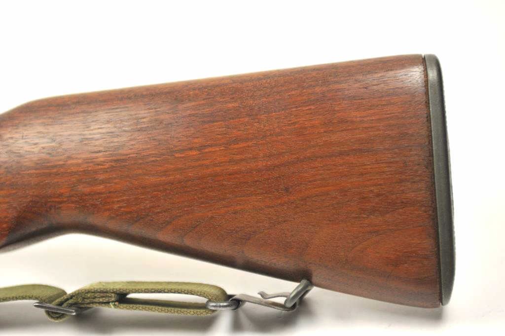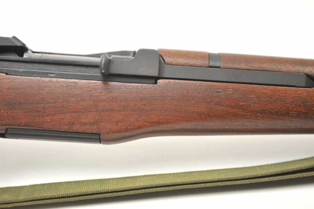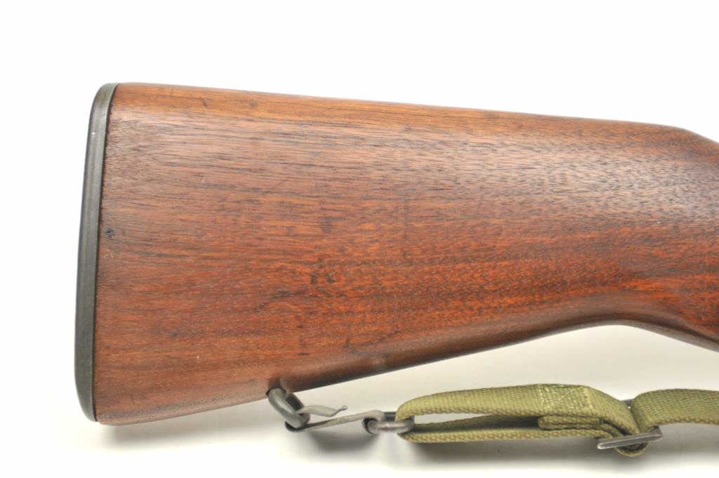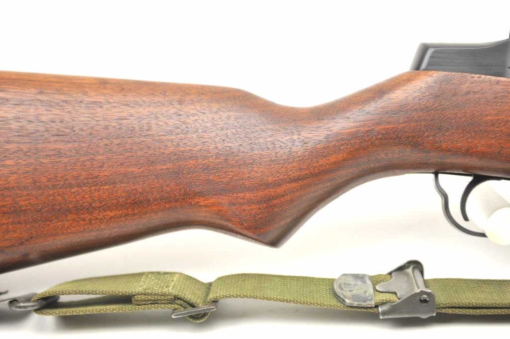 Harrington & Richardson U.S. M1 Garand semi-automatic rifle, .30 caliber, Serial #4704735. The rifle is in fine to excellent condition with a 24” H&R marked barrel dated 3-54. The rifle retains nearly all of theparkerized military finish with all matching correct H&R parts. The smooth wood stock has crisp cartouches with the eagle inspection marks on the left side at the wrist and a Circle P behind the trigger guard. The lotincludes a correct period canvas sling. The butt stock ends with a checkered steel butt plate with trap containing a correct cleaning rod and stuck case remover. The bore is bright, the action is crisp and the markingsare sharp on this all-correct H&R Garand. Est.: $1,400-$2,800. (C+R).