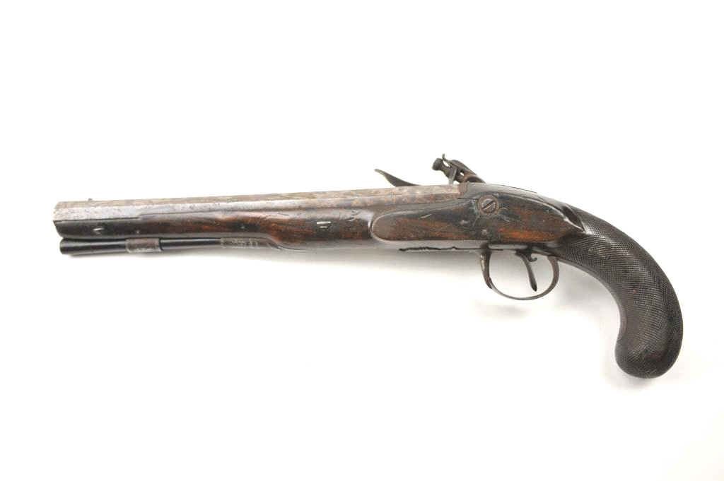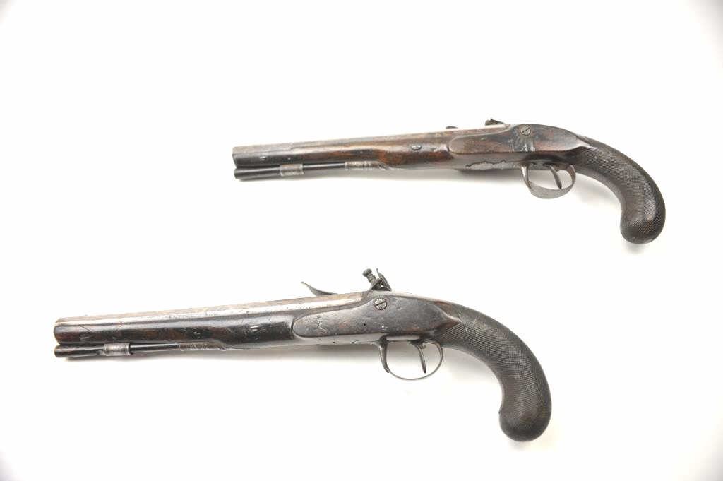 Lot 174 Pair of flintlock dueling pistols by H.W. Mortimer in as found relic condition needing restoration