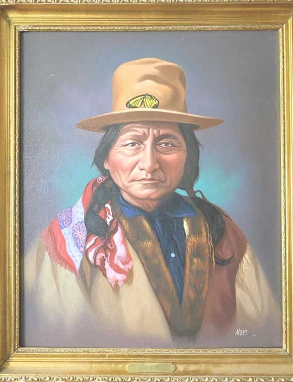 Lot 176 Original oil painting on canvas of “Sitting Bull” signed lower right “Noel” circa 1972. Measures 2