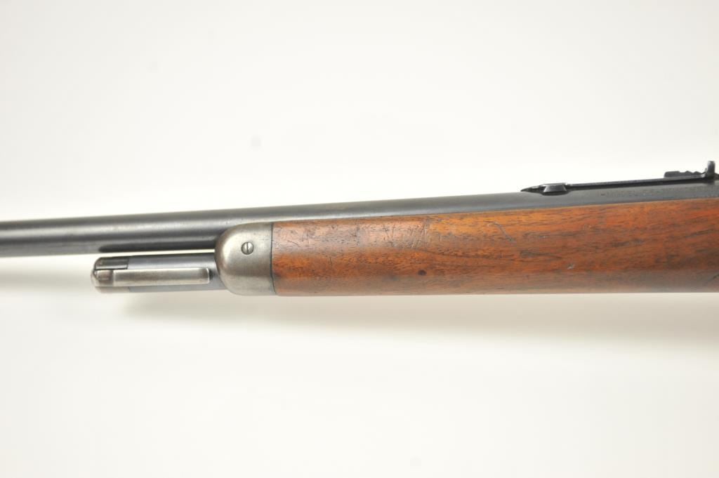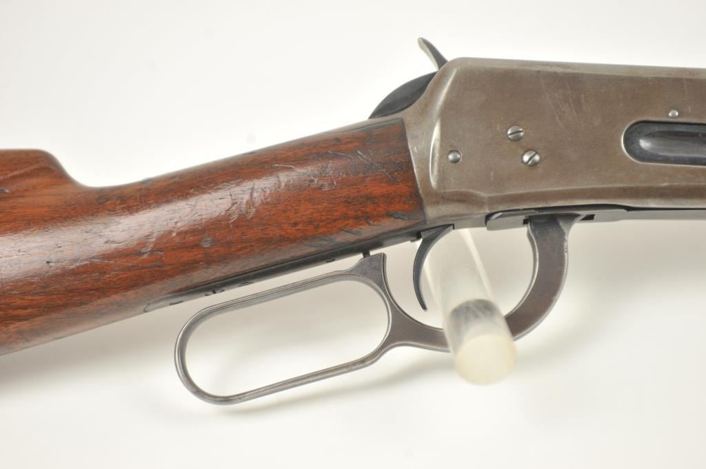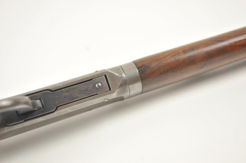 Winchester Model 55 Takedown lever action rifle, .30 WCF caliber, Serial #1039589. The rifle is in very good overall condition with a 24” round barrel and a ¼ magazine. The barrel and magazine retain a significantamount of toning blue finish with the receiver having gone to a grey patina with blue on the loading gate, bolt and lever. The smooth wood stock is in good condition with dents and compressions from carry anduse. The butt stock ends with a steel butt plate. The bore is dirty and may clean to good, the action is tight and the markings are legible. Est.: $900-$1,800. (C+R).