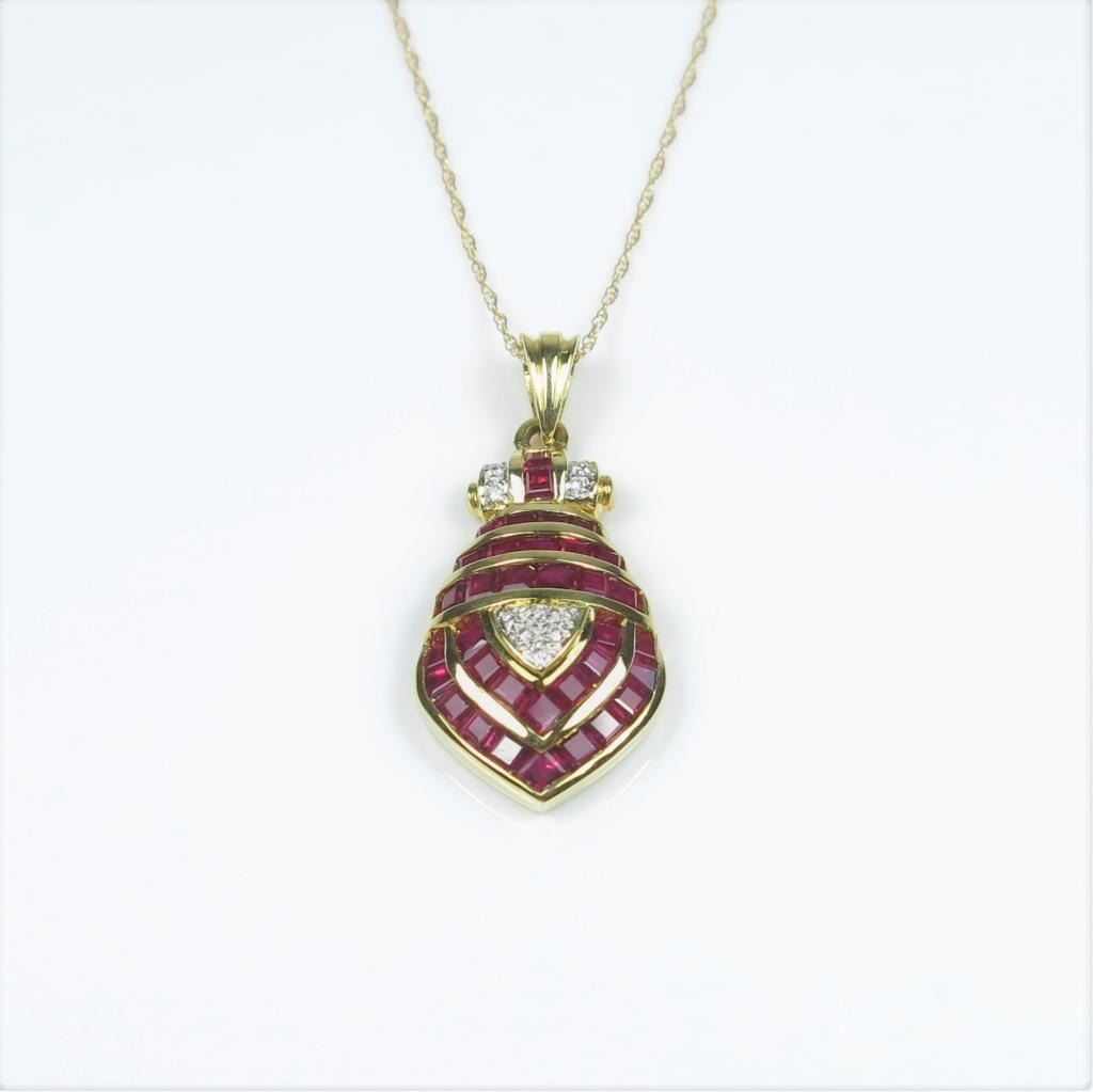 Lot 200e Brilliant Ruby and Diamond Pendant featuring 35 channel set Princess cut Burmese color Rubies weig