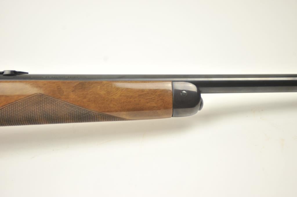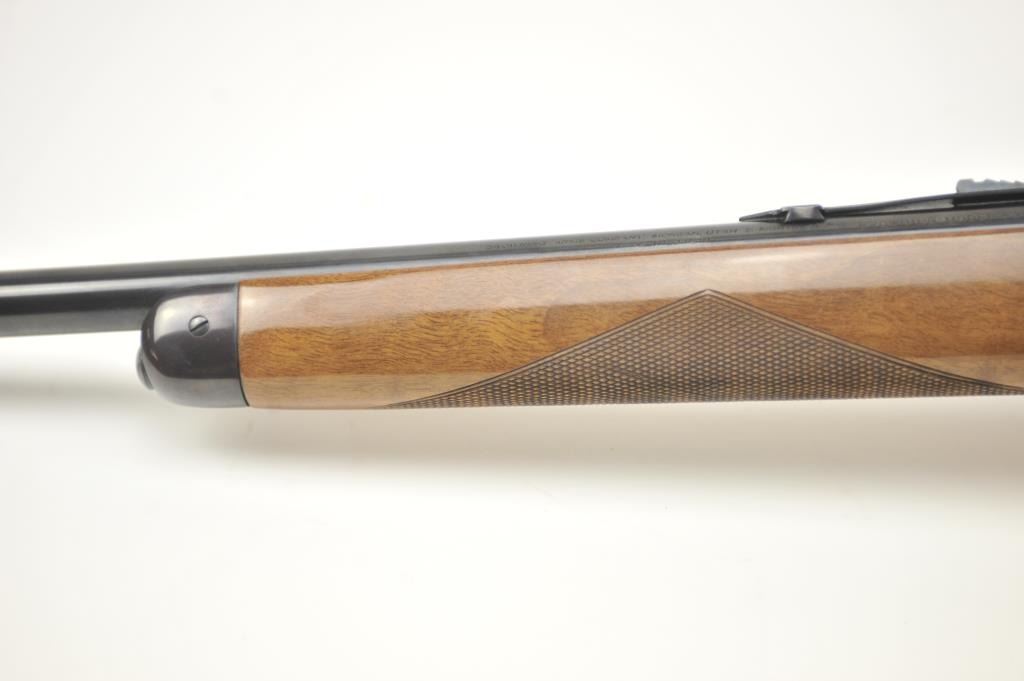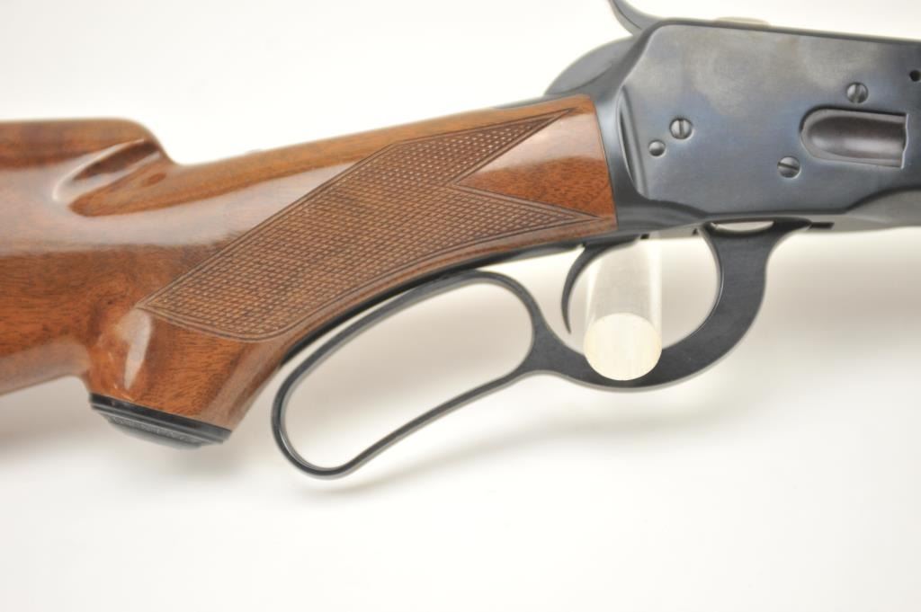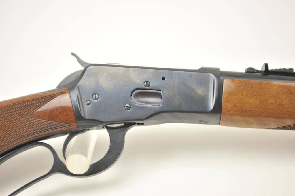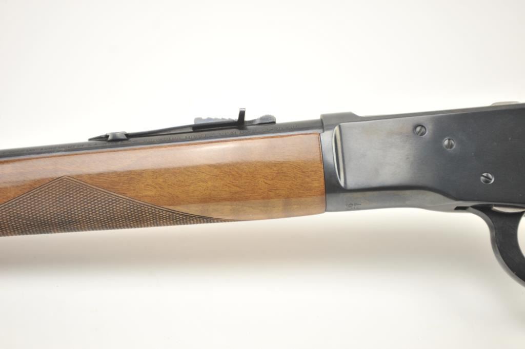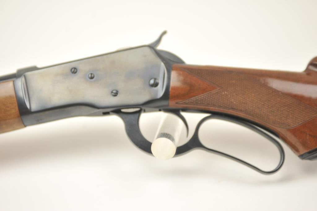 Browning Model 53 lever action rifle, .32-20 Winchester caliber, Serial #01106NM3F7. The rifle is in fine overall condition with a 22” barrel and a button magazine. The finely checkered Walnut pistol grip stock is in very good condition. The bore is good, the action is crisp and the markings are sharp on this long out of production Model 53. Est.: $600-$1,200. (Modern).