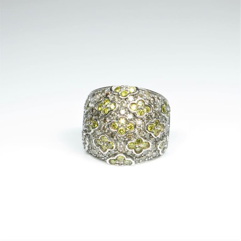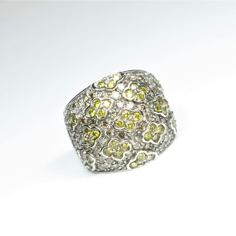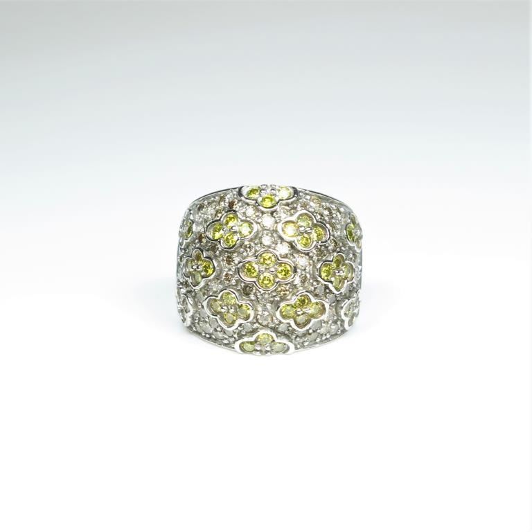 Lot 225d Designer Style Yellow Sapphire and Diamond Ring featuring dome shaped design with detailed mosaic