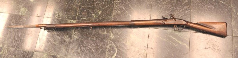 Lot 267 U.S. Model 1797 Springfield flintlock musket in .69 caliber with bayonet and rod. In original fli