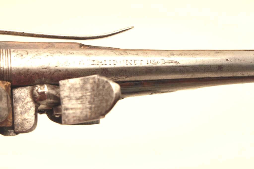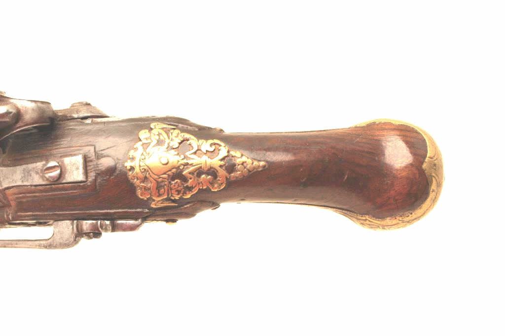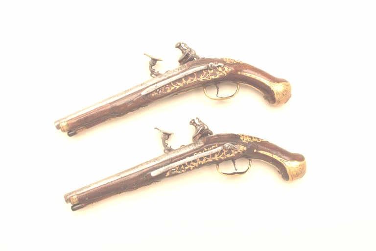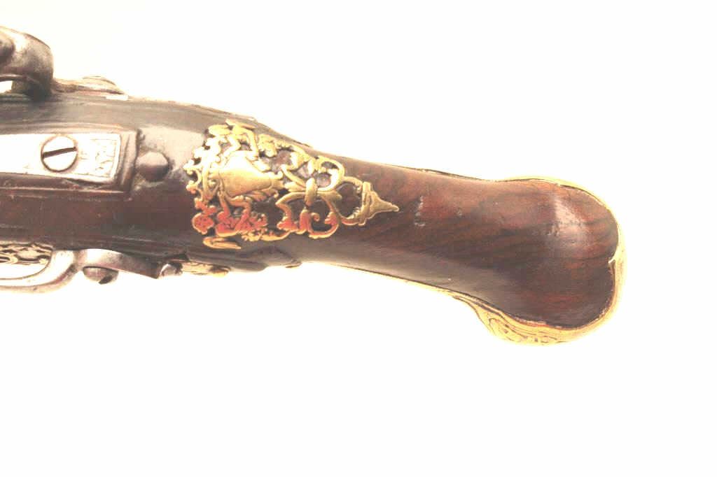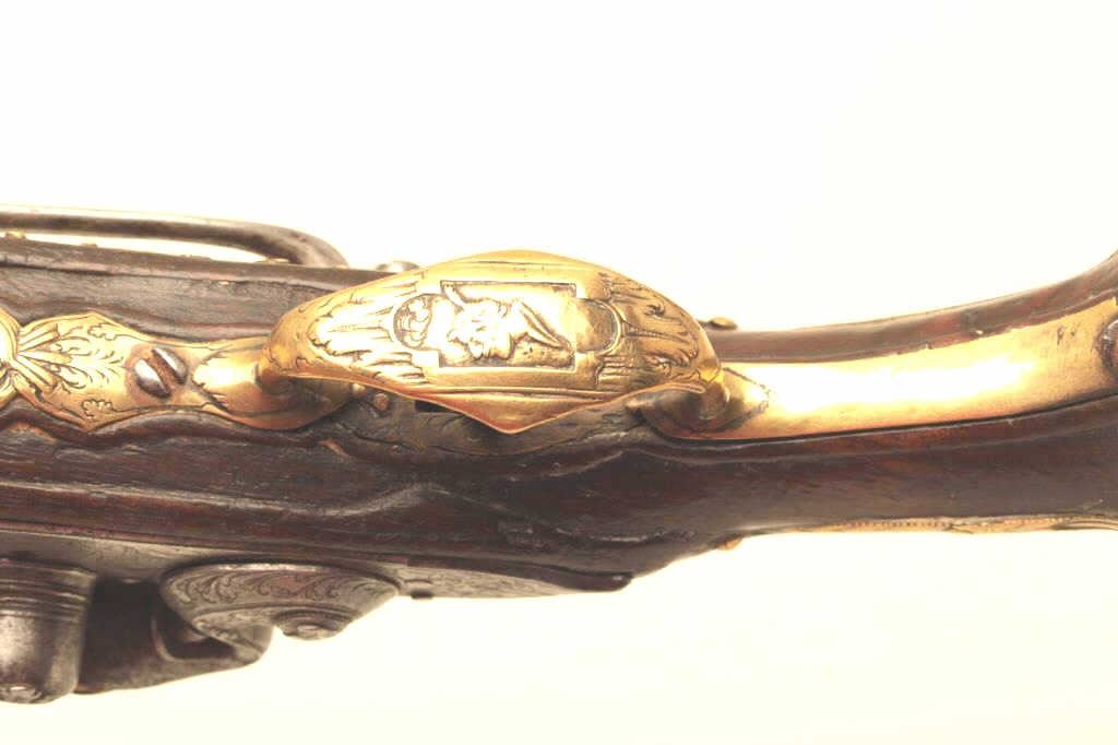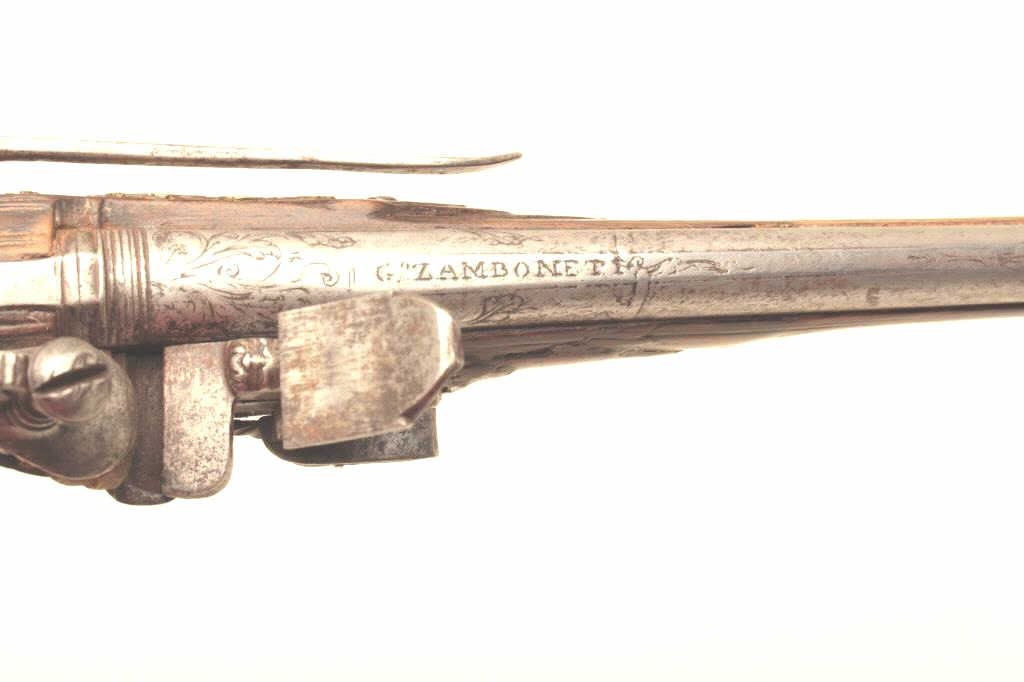 Lot 269 Pair of snaphance flintlock pistols by Giovanni Zambonetti circa 18th century with gilded brass en