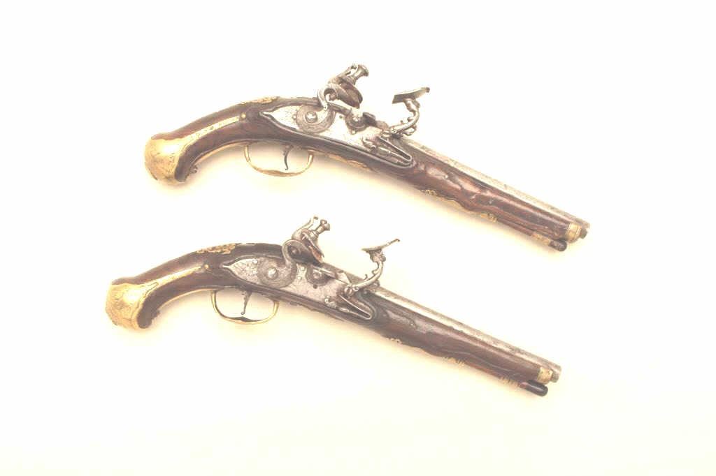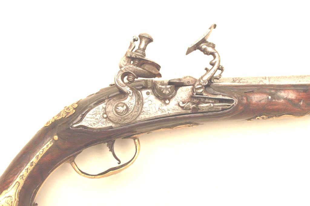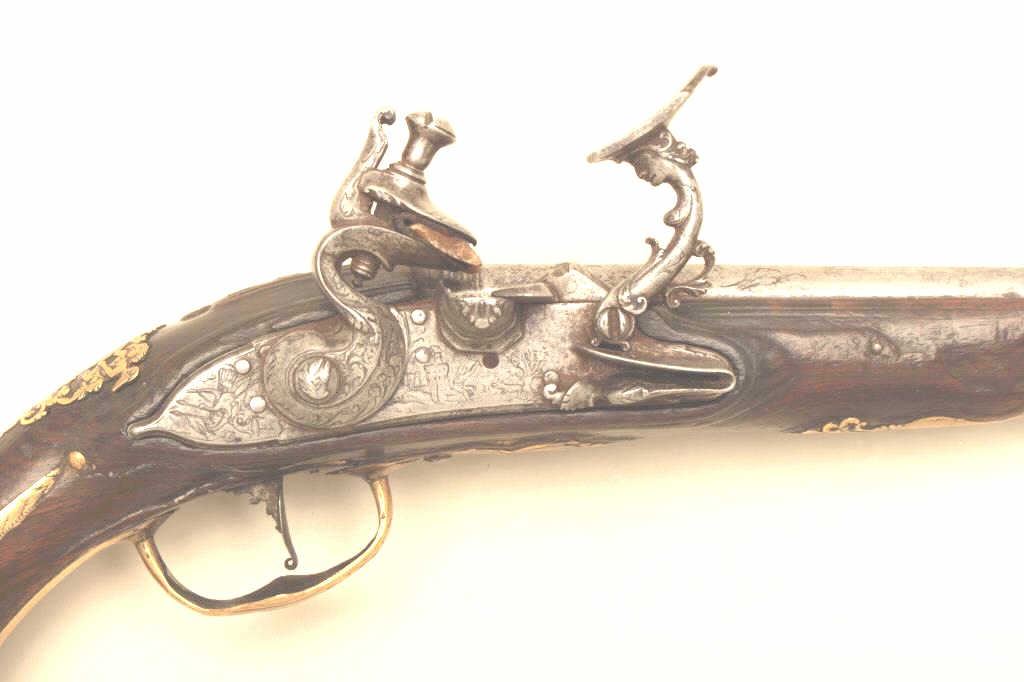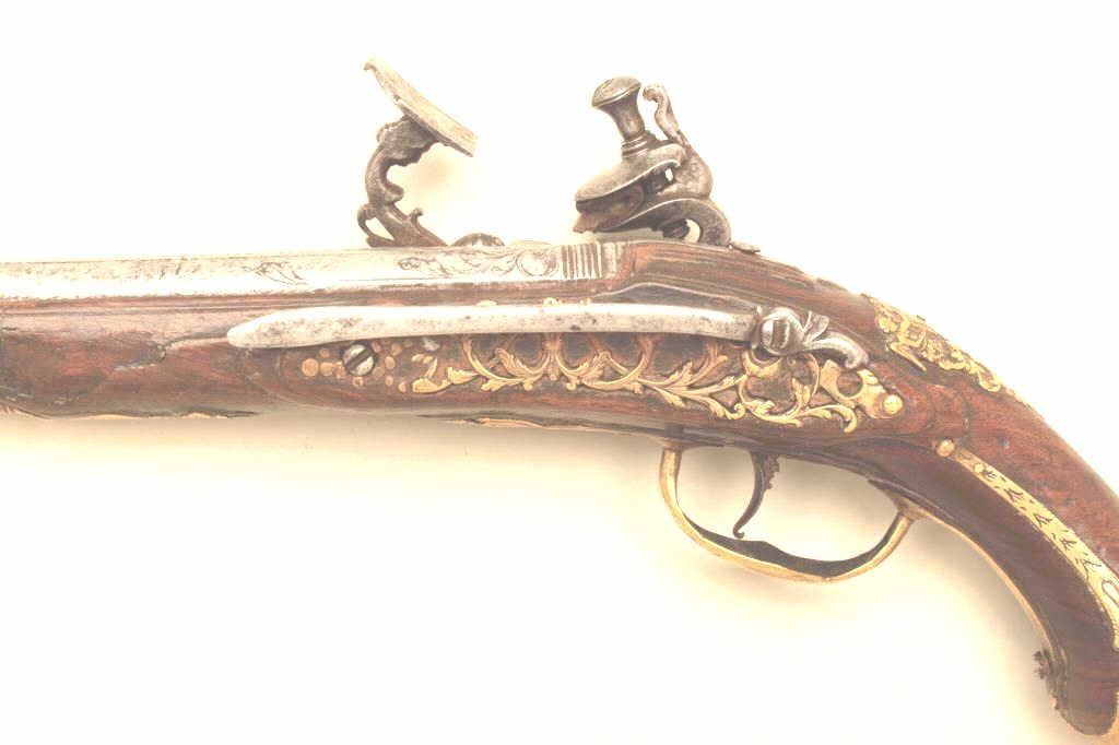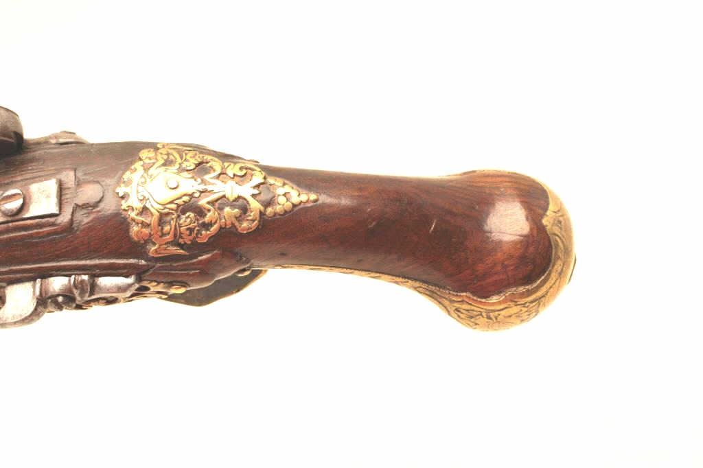 Lot 269 Pair of snaphance flintlock pistols by Giovanni Zambonetti circa 18th century with gilded brass en