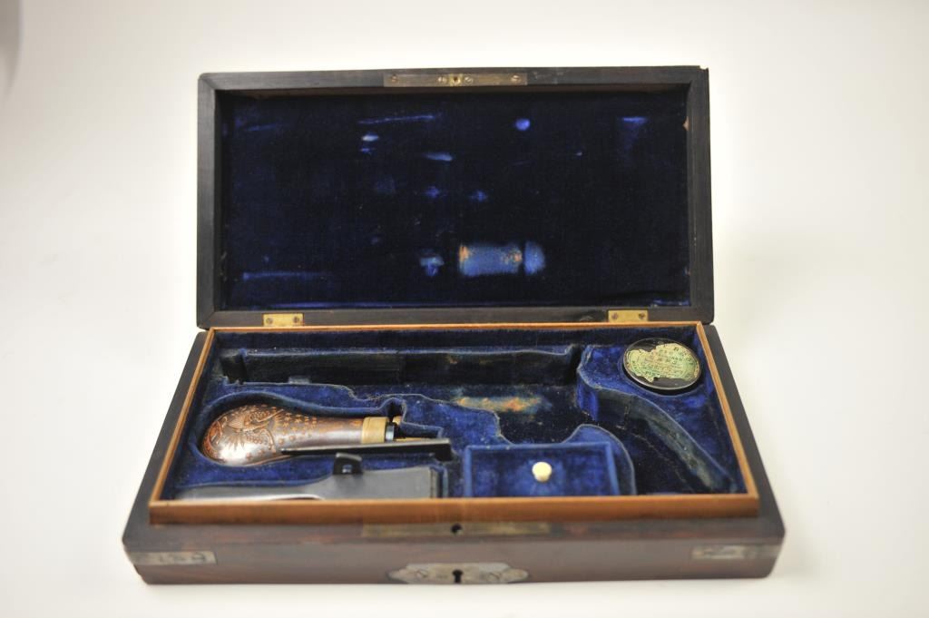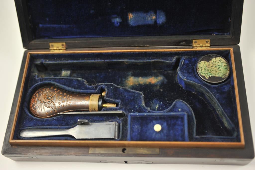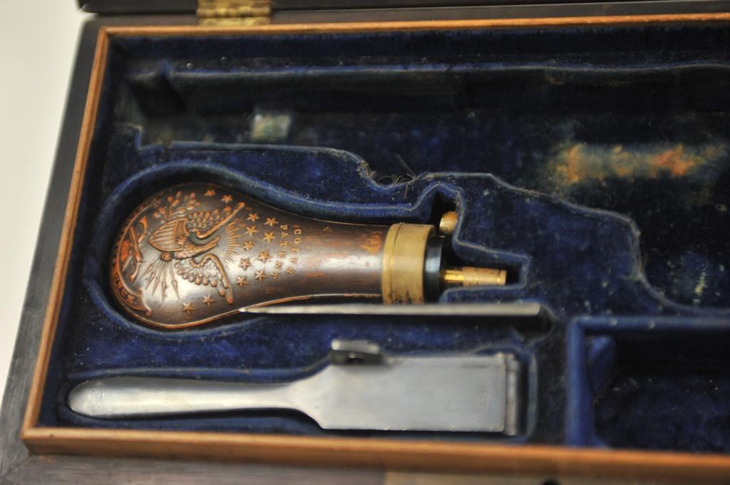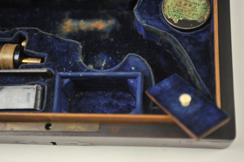 Lot 285 Ultra-Deluxe French style rosewood box for Colt 1849 Pocket Model with a 5” barrel small guard wit
