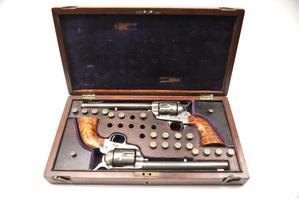 Lot 293 Pair of cased SA Army revolvers, .44-40 caliber, 7½” barrels with traces of nickel finish, Deluxe