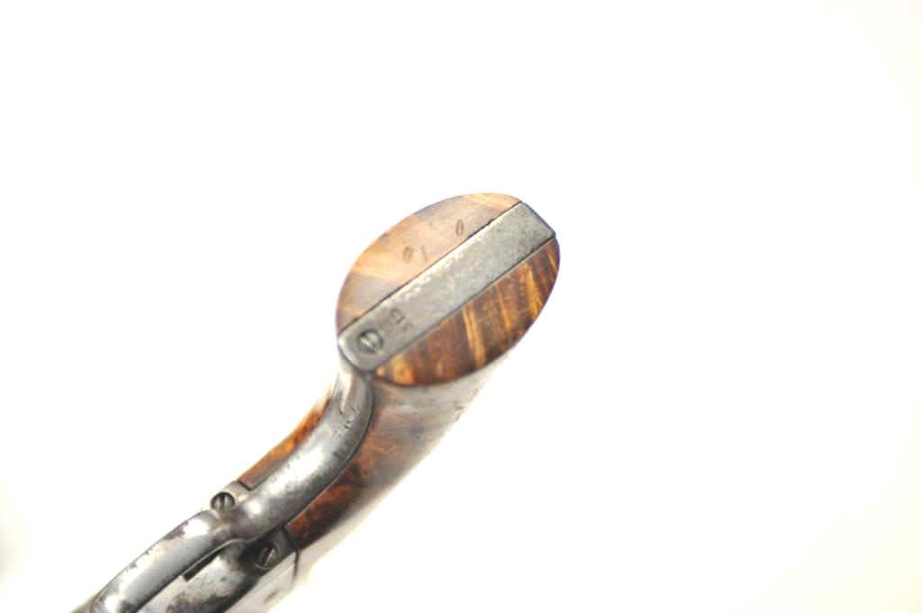 This pair are in fair to good condition with traces of nickel finish still present, good markings, some scattered erosion and light to moderate pitting. Additionally, the pistols show matching numbers and most markings are good with a couple of the numbers light but visible under magnification. The grips are very good and were likely added later, when the pistols were cased, but are old and attractive. The front sights are nearly full height, with one slightly better than the other. The bores are fair to good and may clean (Blanks?).