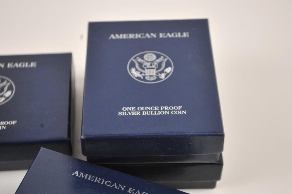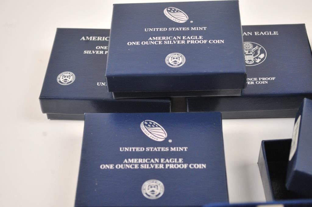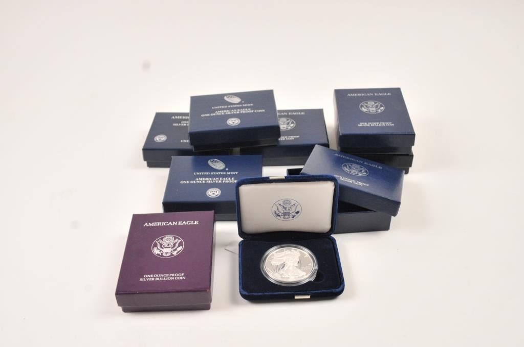 Lot 294 U.S. Mint silver dollar proofs in boxes. Including: 1987, 1991, 2004, 2005, 2007, 2008, 2013, 20