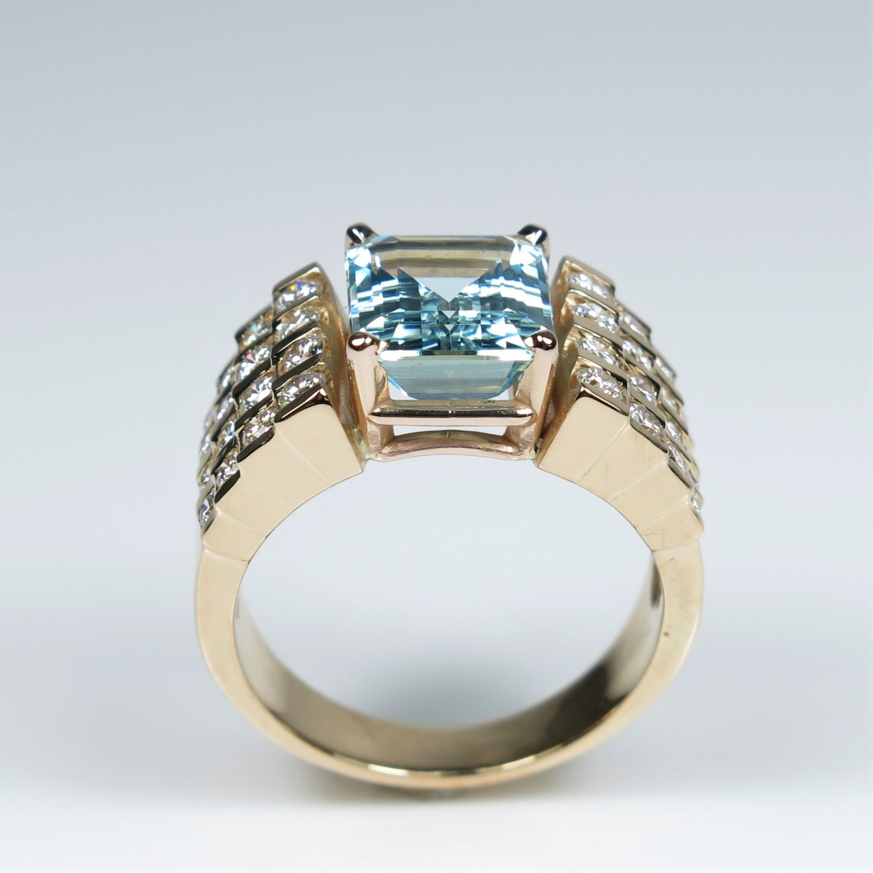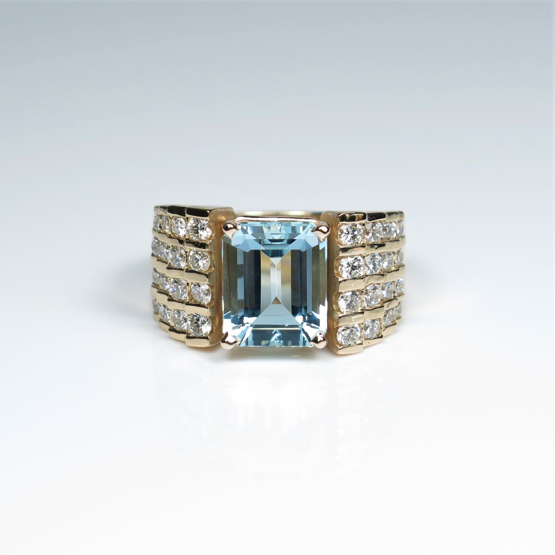 Lot 300c Exquisite Fine Santa Maria Aquamarine and White Diamond Ring featuring an emerald cut Aquamarine w