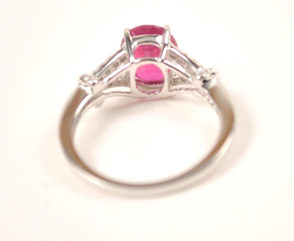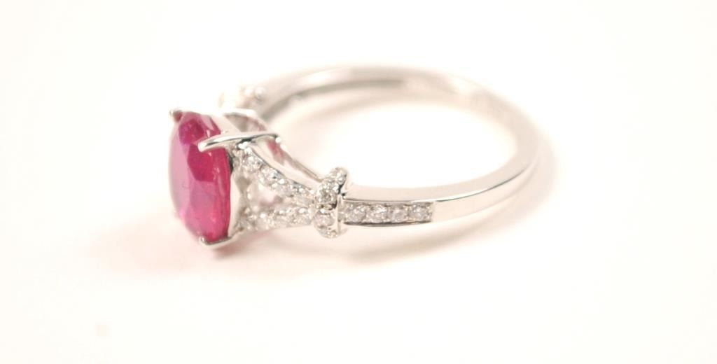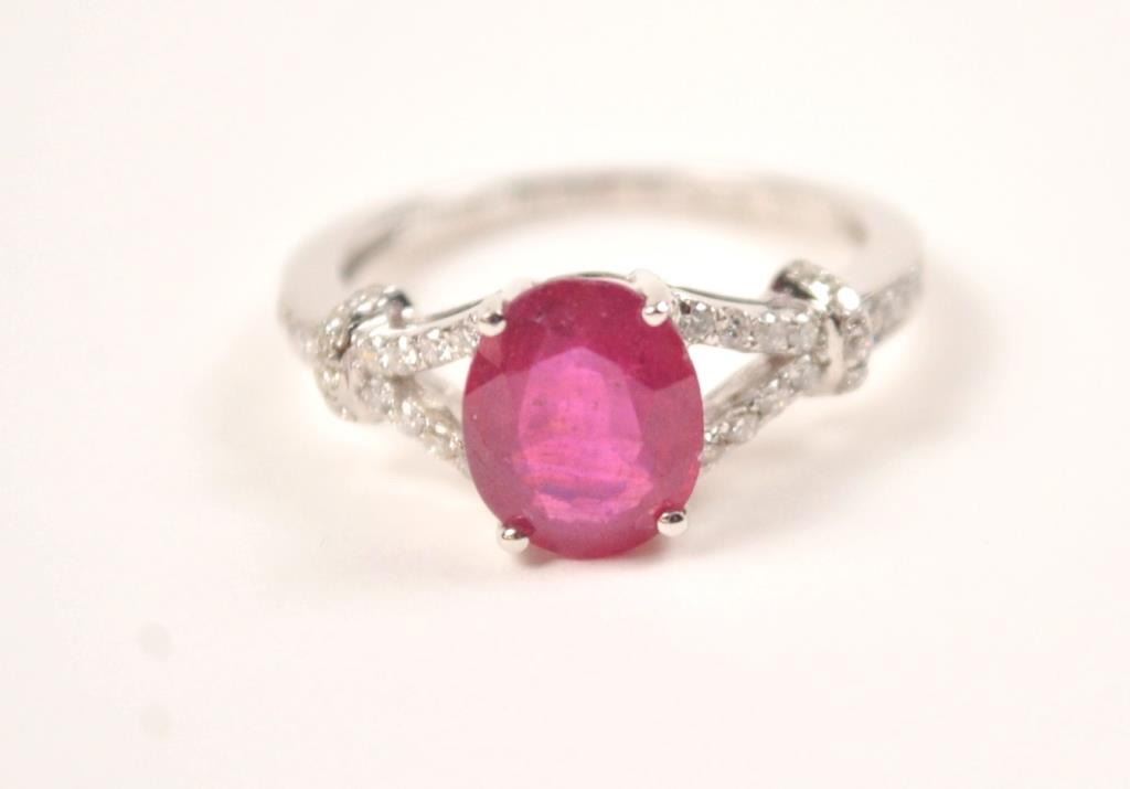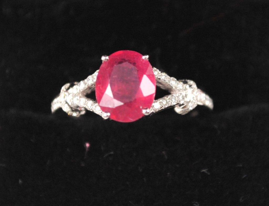Lot 304 One beautifully designed ruby diamond ring made in 18k white gold containing 2,25ct oval ruby and