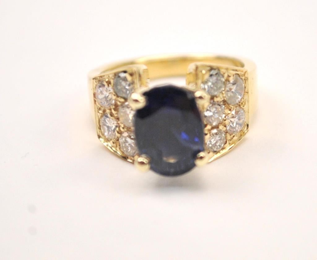 Lot 324 One fine sapphire and diamond ring containing an oval sapphire weighing 4.11ct and 10diamonds weig