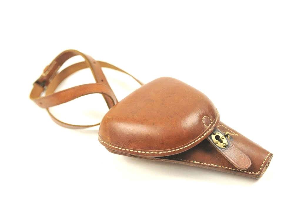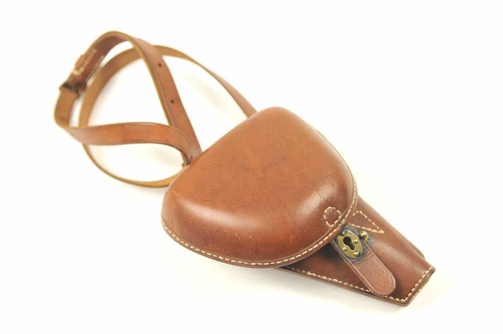 Lot 336b Excellent reproduction clamshell style leather holster for a Baby Nambu pistol. The holster was m