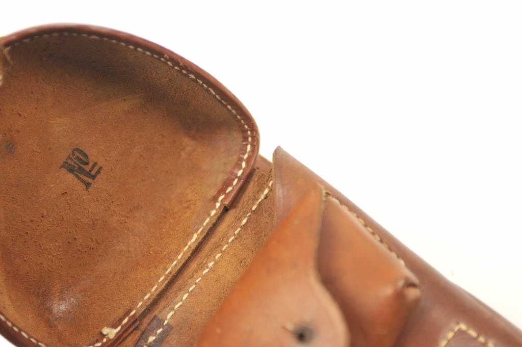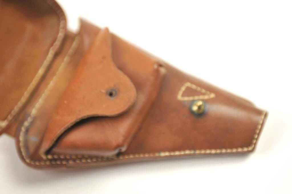 Excellent reproduction clamshell style leather holster for a Baby Nambu pistol. The holster was made 30-40 years ago, an almost undetectable and accurate reproduction. Est.: $175-$350.