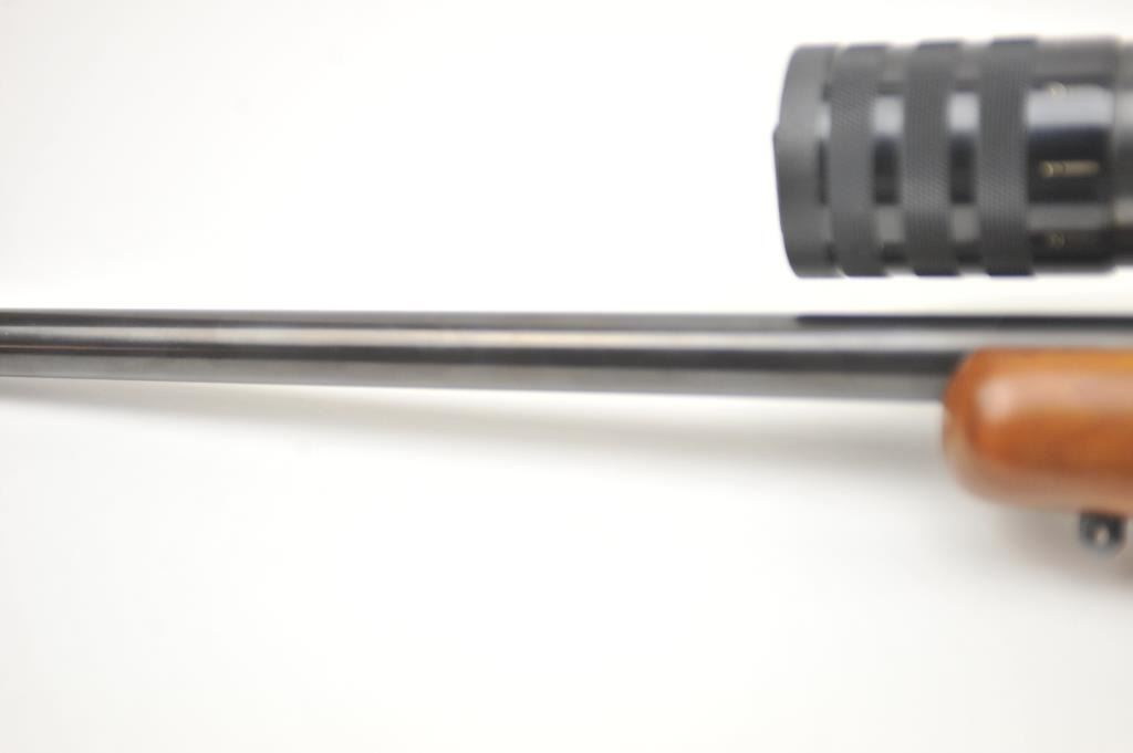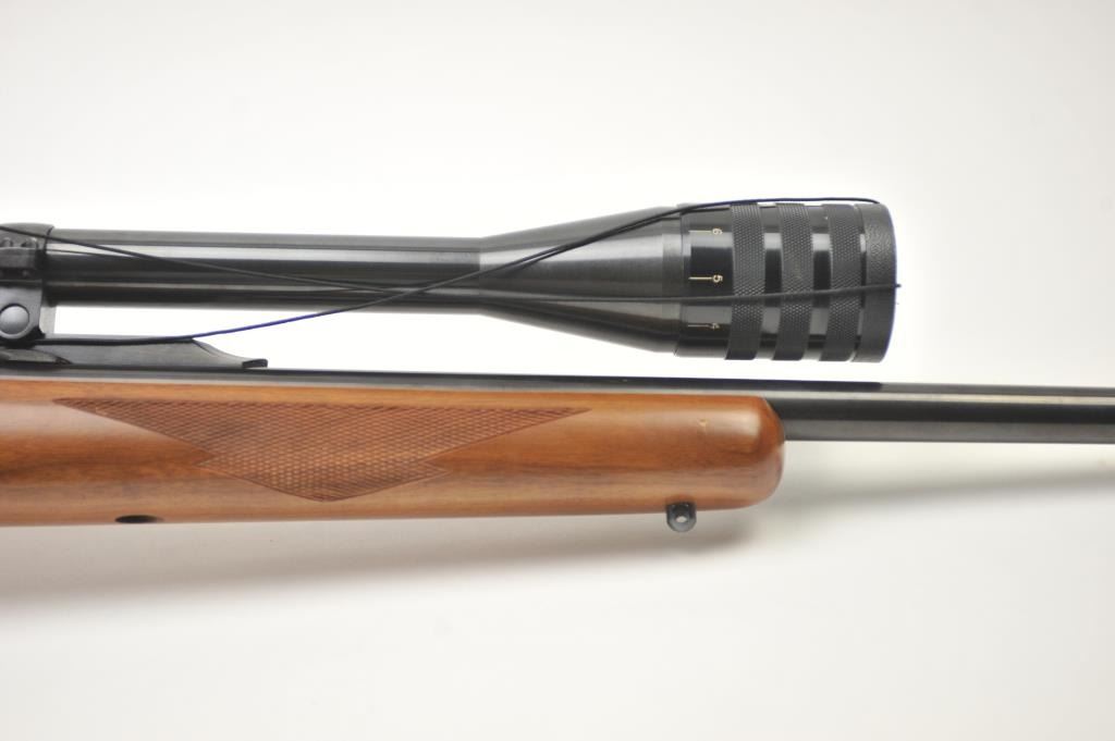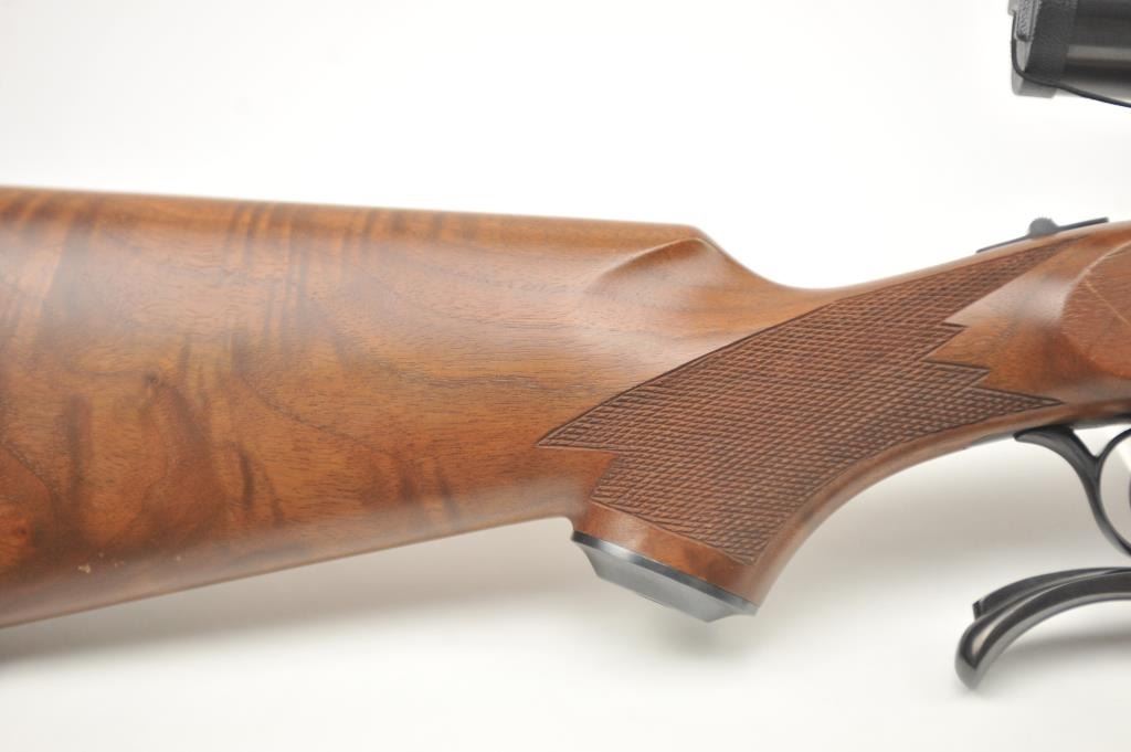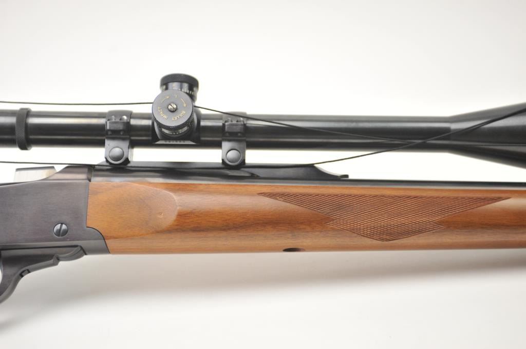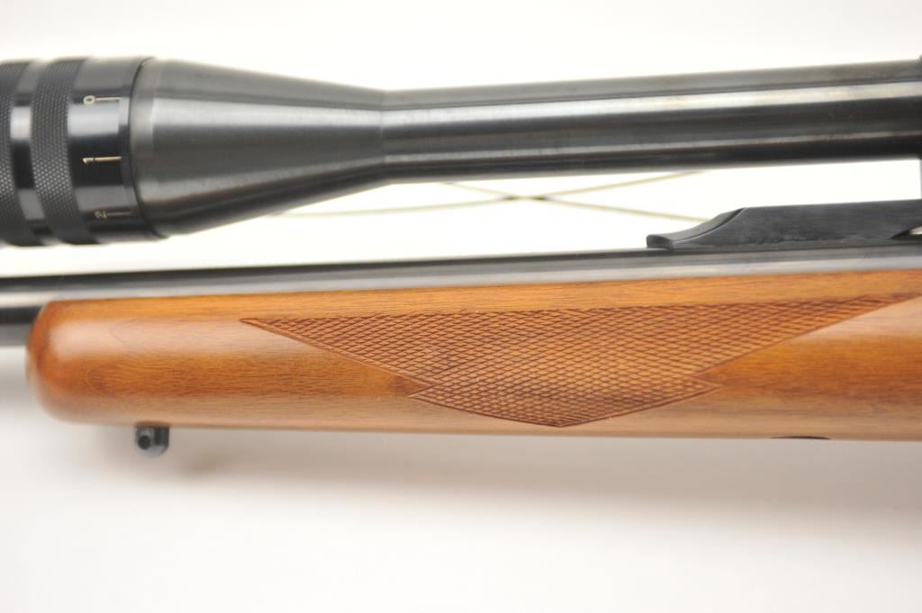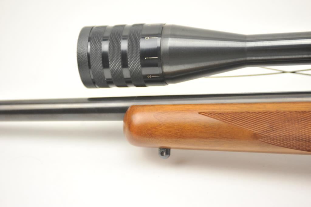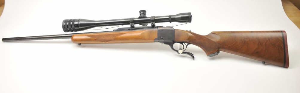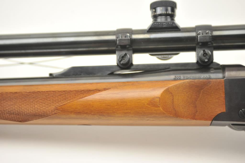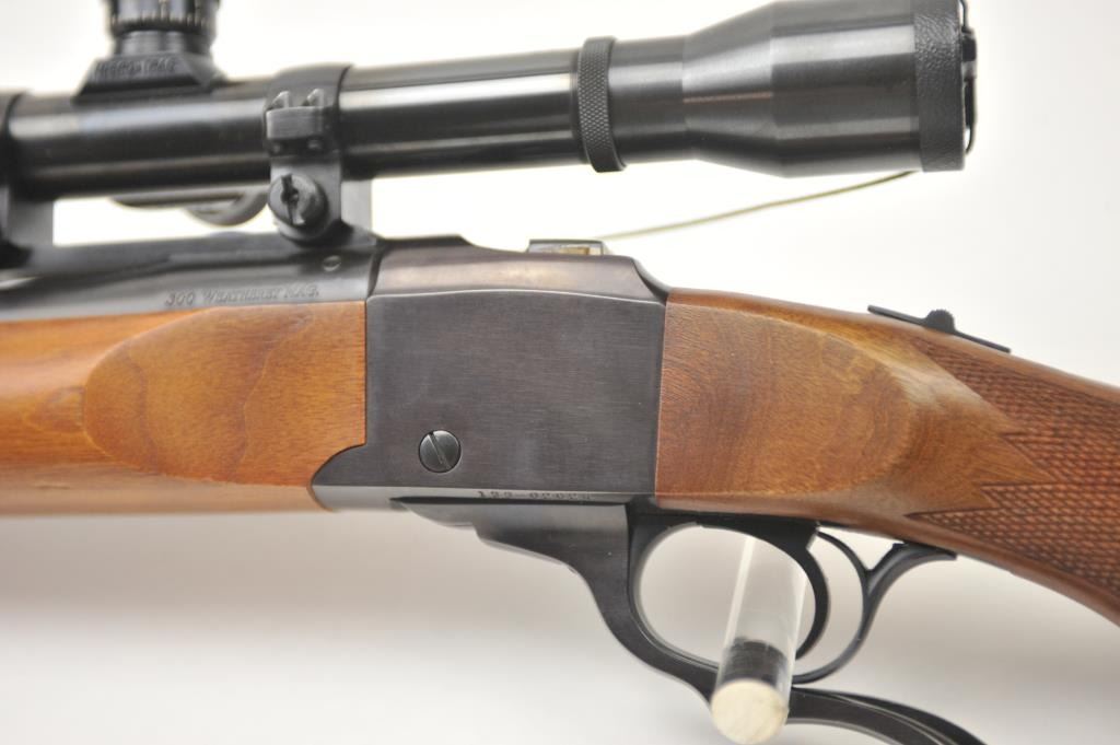 Ruger No.1 single shot rifle, .300 Weatherby Magnum caliber, Serial #133-02624. The rifle is in fine overall condition with a 26” barrel showing little use. The checkered wood stock is in very good condition withsharp checkering, tang mounted safety and a red rubber recoil pad. The bore is good, the action works well and the marking are sharp on this desirable Ruger. The rifle is topped with a Weaver T-25 Target scope withadjustable objective. The lot includes the factory cardboard box with matching end label. Est.: $700-$1,400. (Modern).