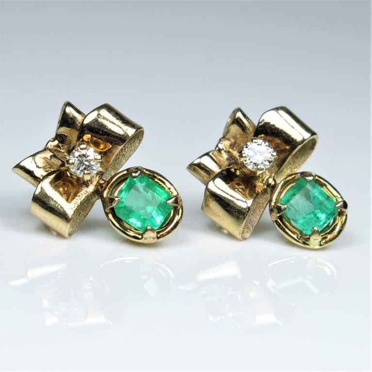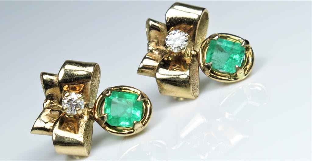 Lot 350e Gorgeous Vintage Emerald and Diamond Earrings featuring two matching Colombian Emeralds weighing a