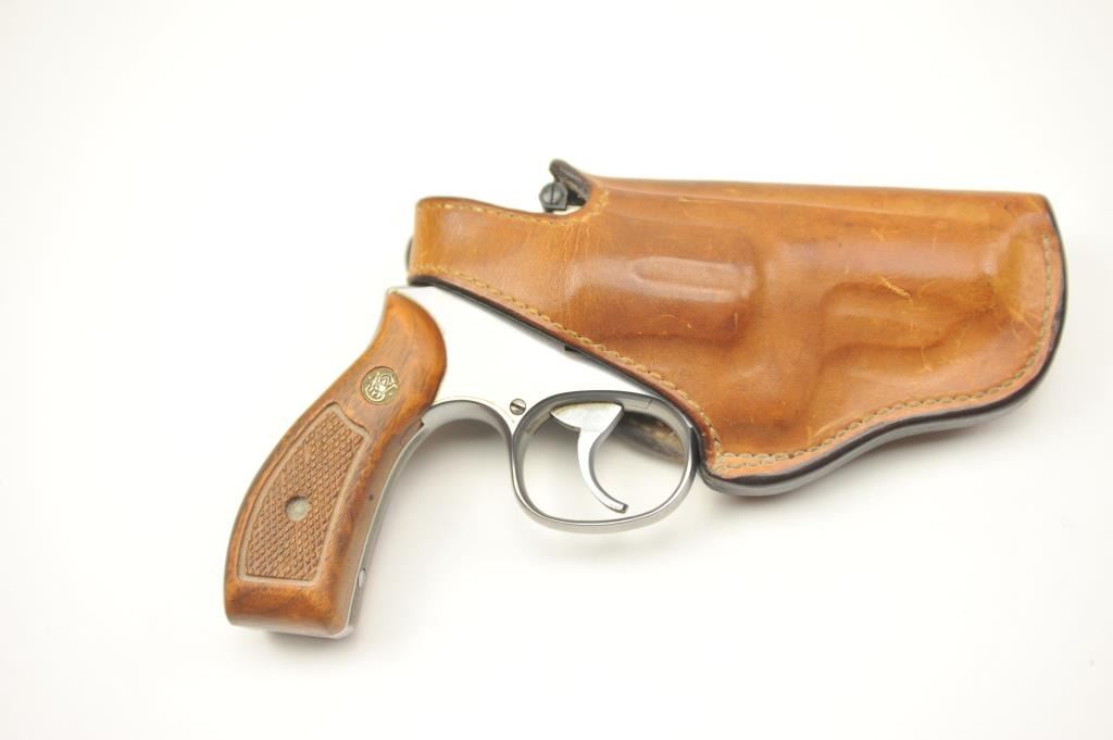 Smith & Wesson Model 66-3 Double Action Stainless Steel Revolver in .357 mag with a 2 ½” barrel, S/N BBV4246. Very good plus to fine used and carried condition with Bianchi duty holster. (Modern/PPT) Est.: $400-$800