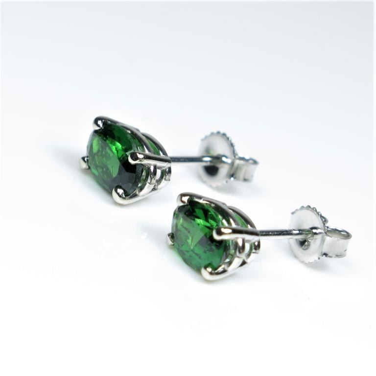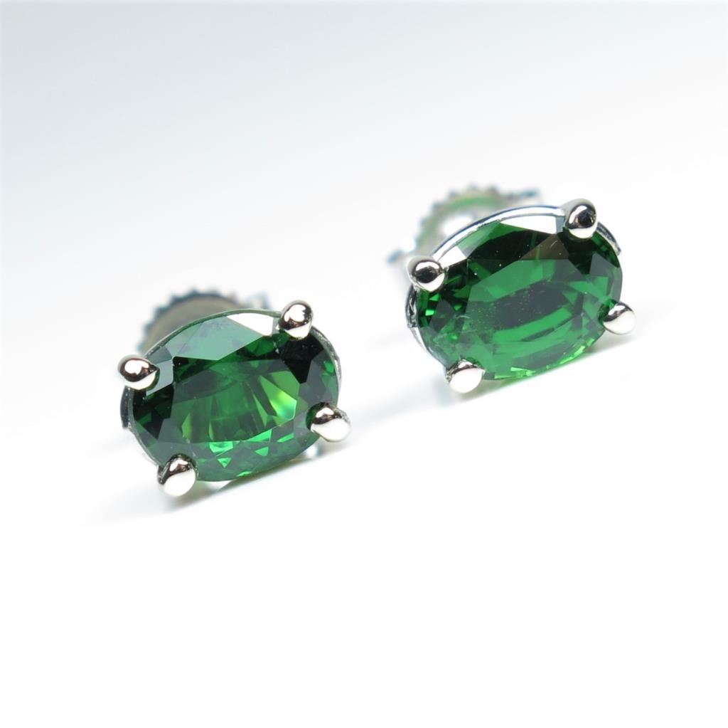 Gorgeous AAA Quality Fine Tsavorite Stud Earrings weighing approx. 1.80-2.00 carats set in 14 karat white gold Tiffany style settings. Retail $3,000-$4,000 Estimates $1,500-$2,000