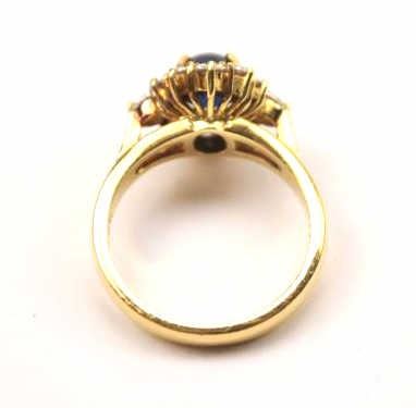Lot 386 Outstanding blue sapphire and diamond ladies ring set in 18K yellow gold. The ring features a gre