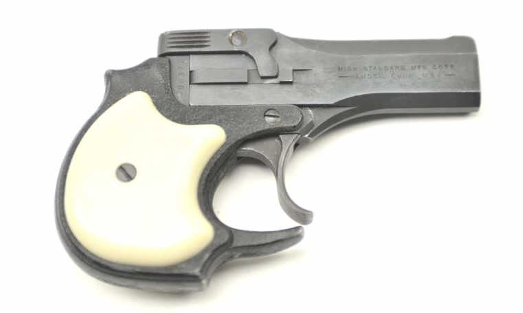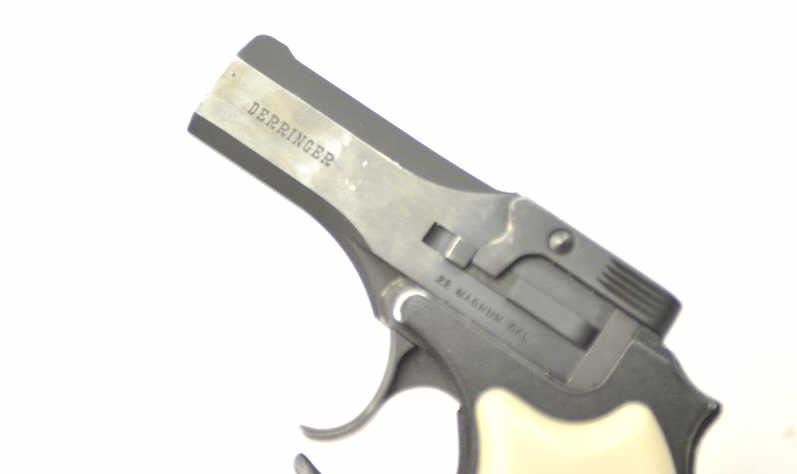 Lot 407 Hi Standard Model 101 O/U derringer in .22 mag caliber, S/N 96371. 95%+ original finish with carry