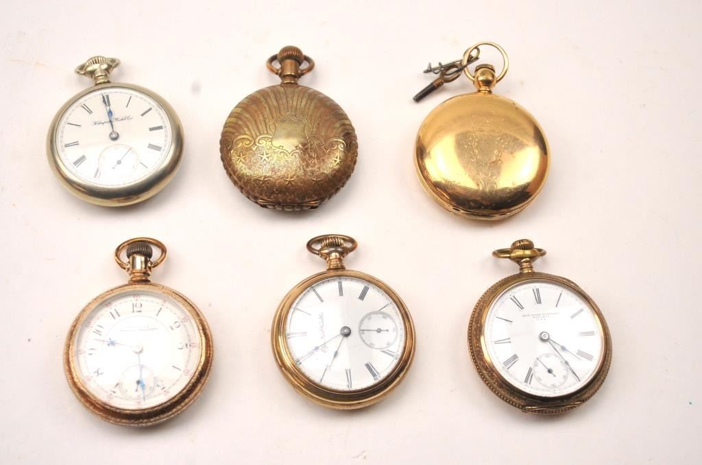 Lot of six antique pocket watches from a collector’s estate. The watches are by various makers, all American. The watches are all in need of cleaning or repair. Est.: $150-$300.