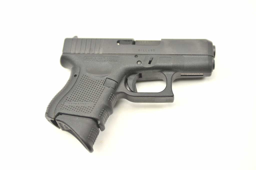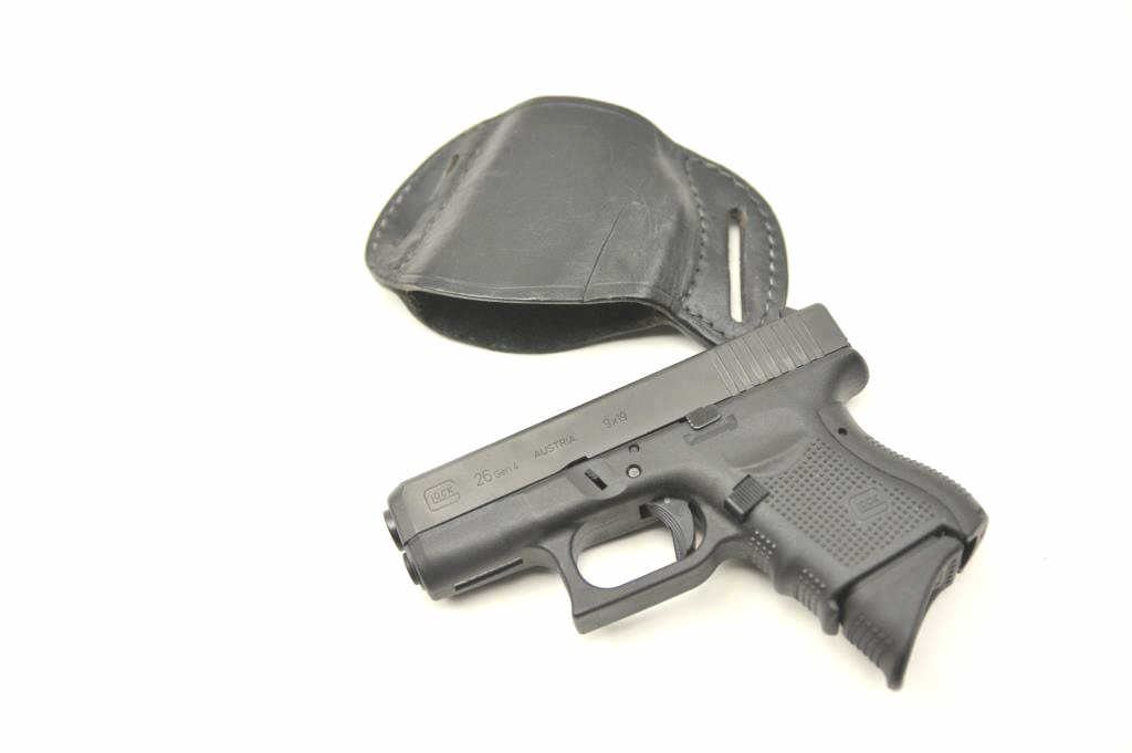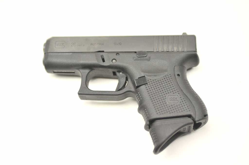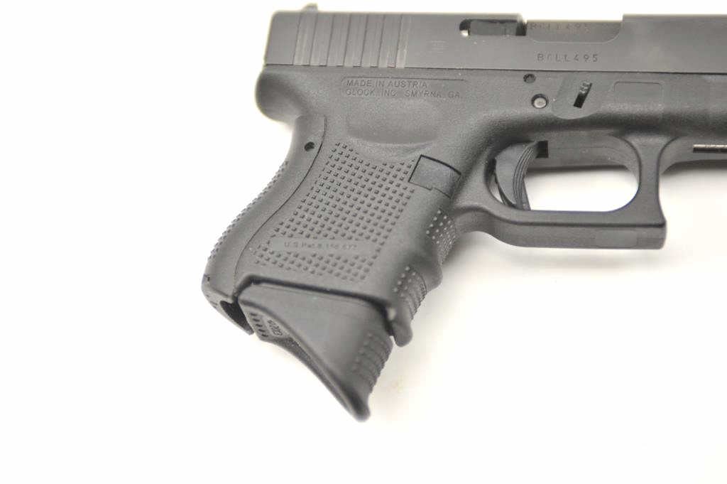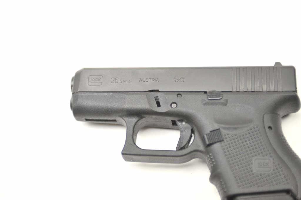 Glock 26 Gen 4 9mm Compact Semi-Auto pistol with holster. Near fine used condition. Some carry and firing. S/N BCLL495. Est.: $400-$800