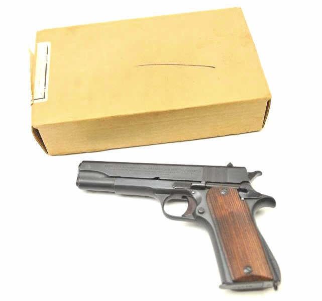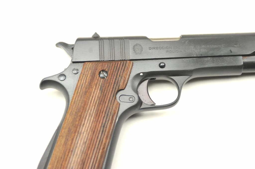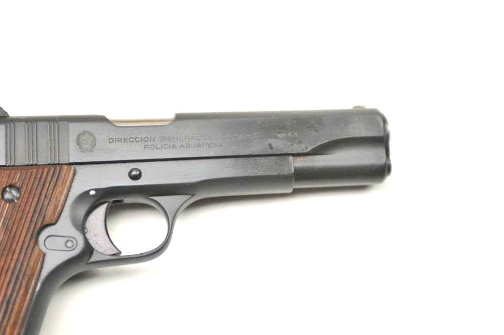 Ballister Molina Argentine made Semi-Auto Pistol in .45 caliber with slide marked “Direccion General De Advanas Policia Advanera” on the right side of the slide and 311. Marked 83018 on the frame. 99% militarystyle refinish with shiny bore and very good grips. Mismatched mag. In 1990’s importers box. (C&R/PPT) Est.: $300-$600