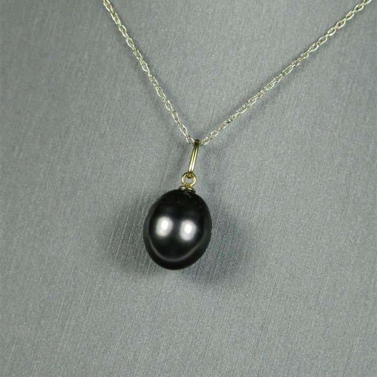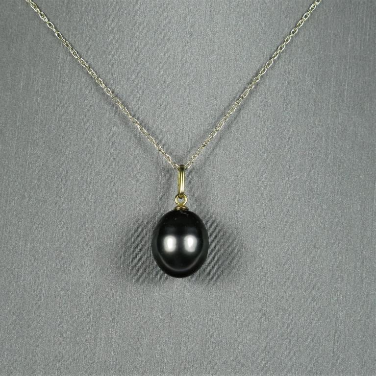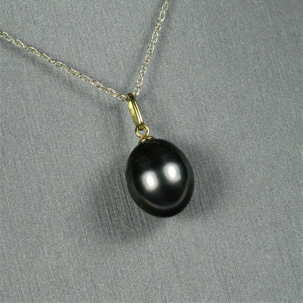 Lot 475c Gorgeous Natural Black Tahitian Pearl Pendant measuring approx. 13.00 MM x 12.00 MM in diameter se