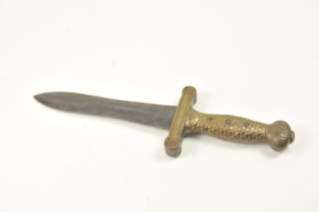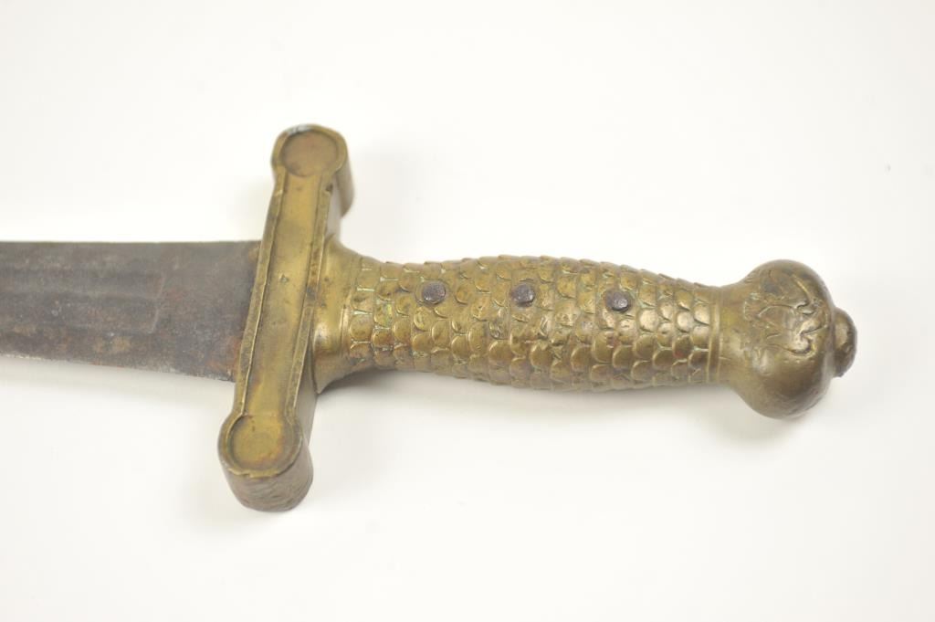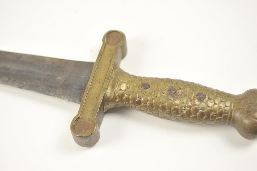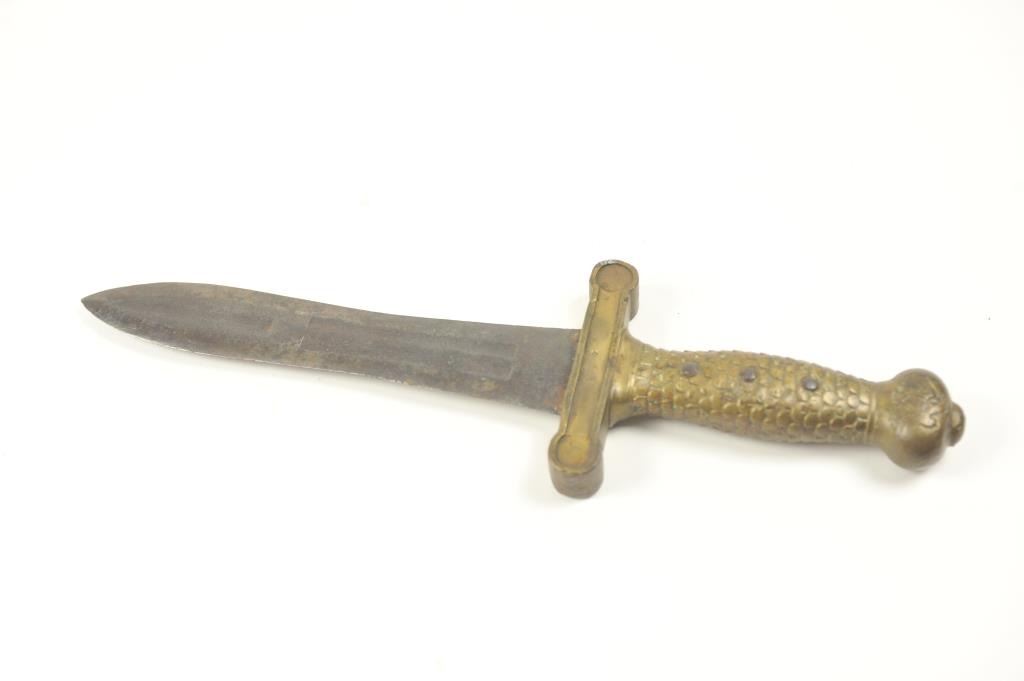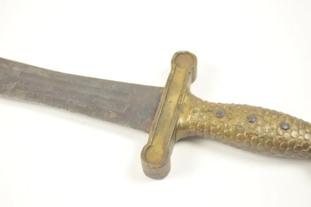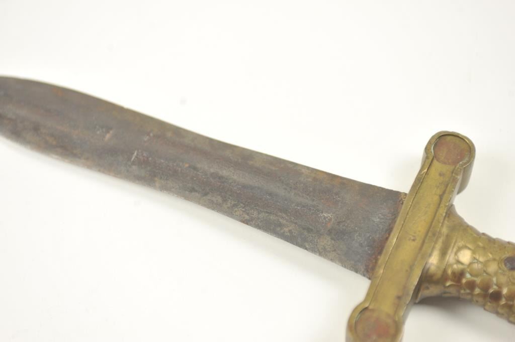U.S. Artillery sword converted to Bowie or Fighting knife. Nicely re-shaped blade probably done professionally with an overall good patina. Est.: $150-$300.