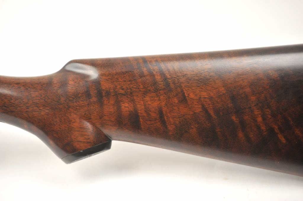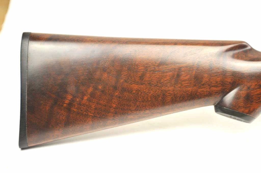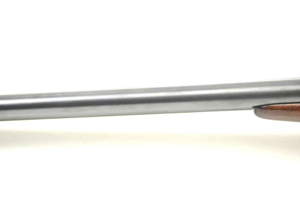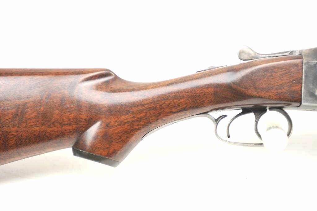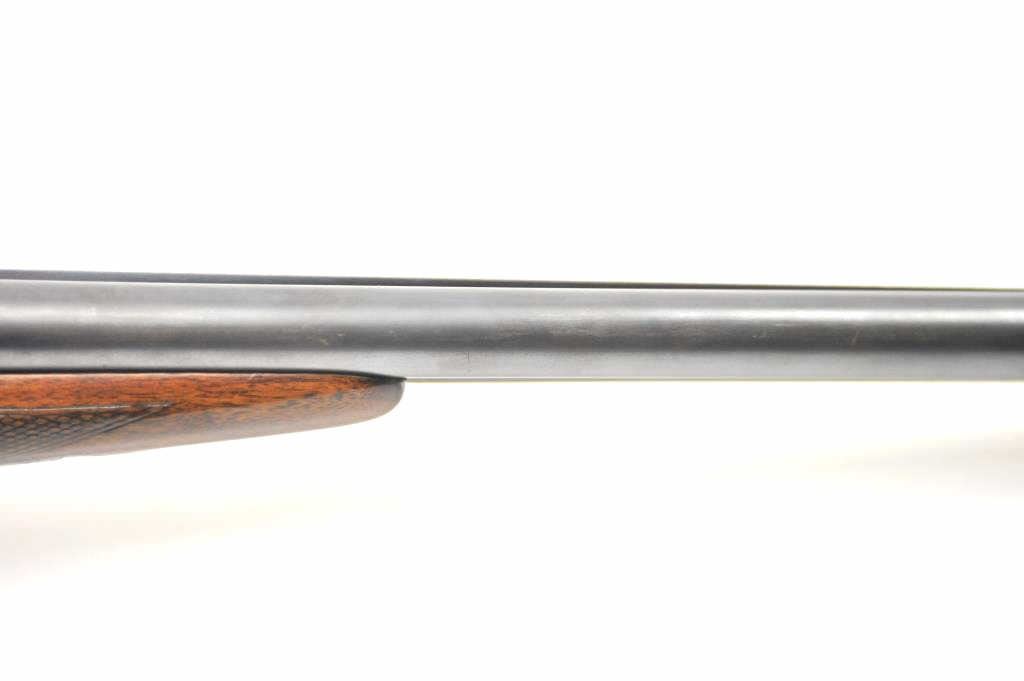 Iver Johnson Hercules Grade Side by Side shotgun, 12 gauge, Serial #2053E. The shotgun is in fine overall condition with 30” barrels with a full-length filed rib choked Modified/Full with extractors. The barrelsretain a significant amount of muted blue finish. The frame shows dull case hardening and double triggers. The checkered wood stock is in very good condition with a splinter fore end and nice figure in the butt stock. The butt ends with a plastic butt plate providing a 14” LOP. The bores are good, the action is crisp and the markings are sharp. Est.: $250-$500. (C+R).