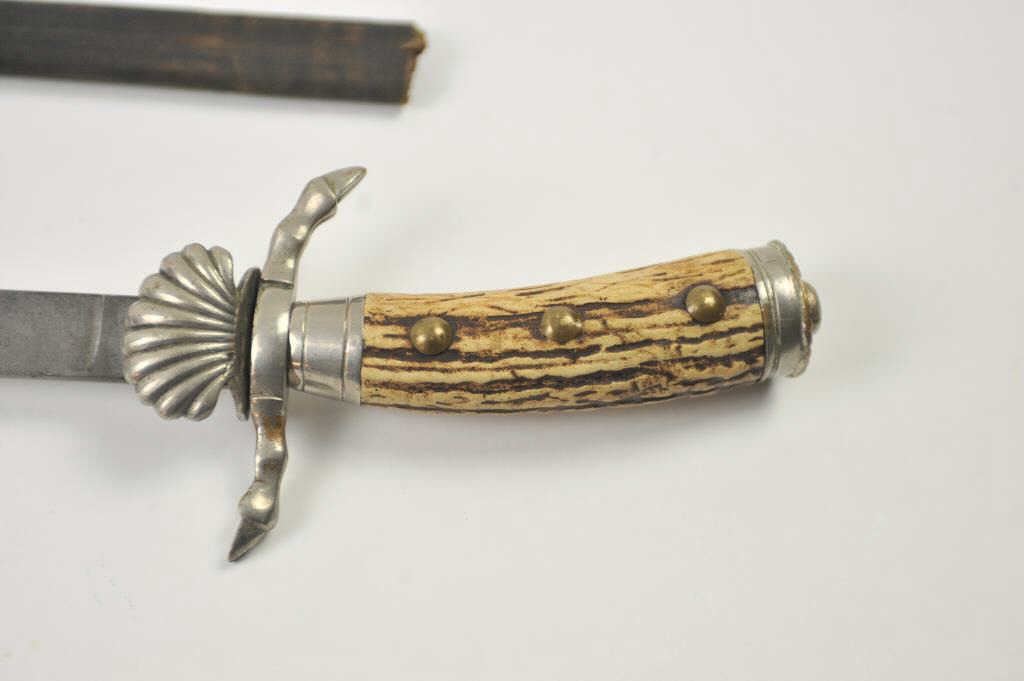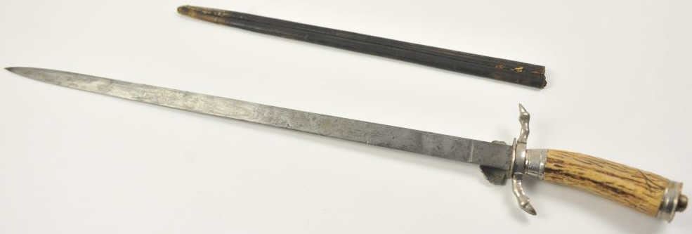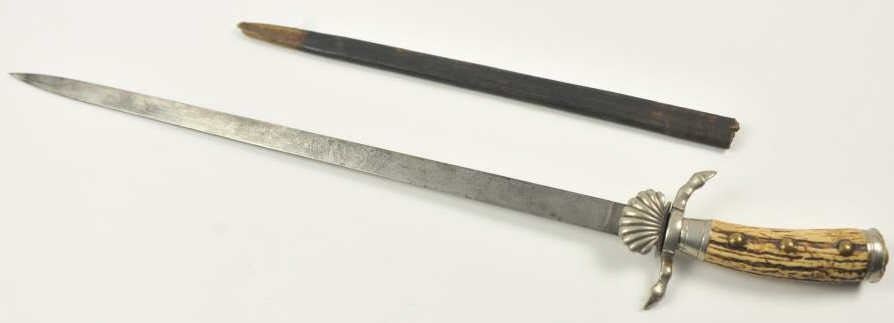 Lot 534 German stag gripped hunting dagger Hirschfanger with etched blade. Late 19th to early 20th century