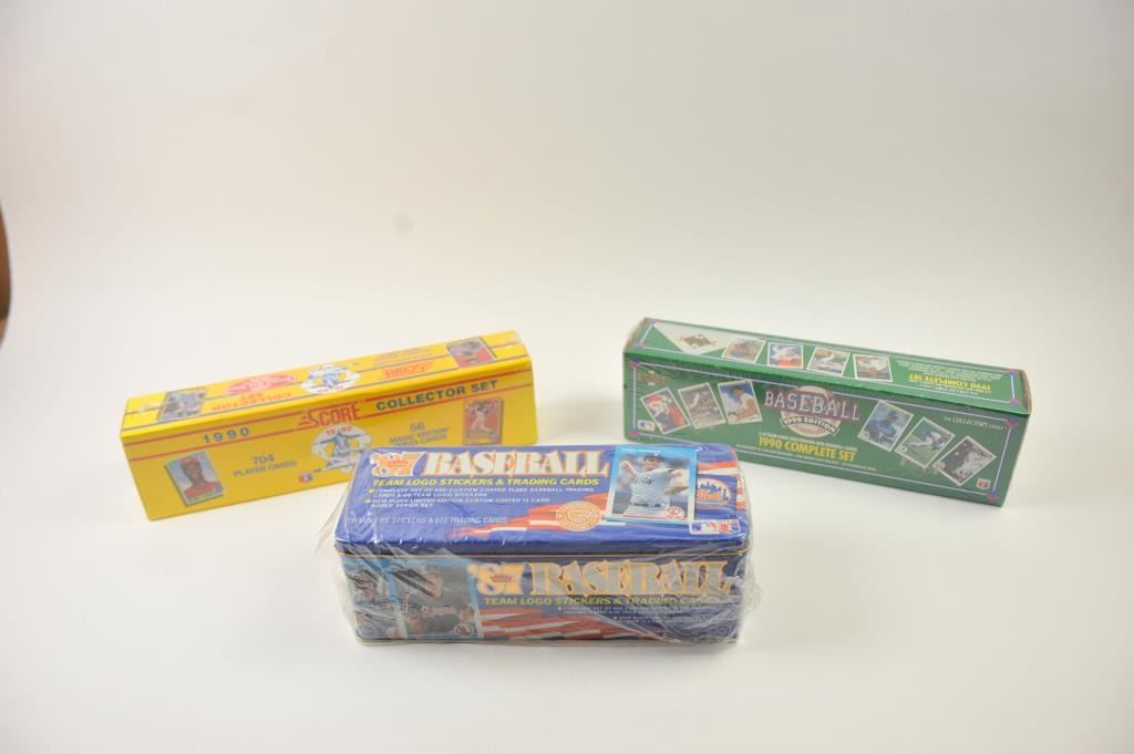 Lot of three unopened MLB collector card sets. The lot includes an unopened 1987 Fleer set in the original tin, an unopened 1990 “Collector” set by Score and an unopened 1990 Upper Deck Hologram set. All threesets are in the original unopened packaging. A lifetime collection of MLB cards. All cards are in very good to excellent condition. Est.: $125-$250.